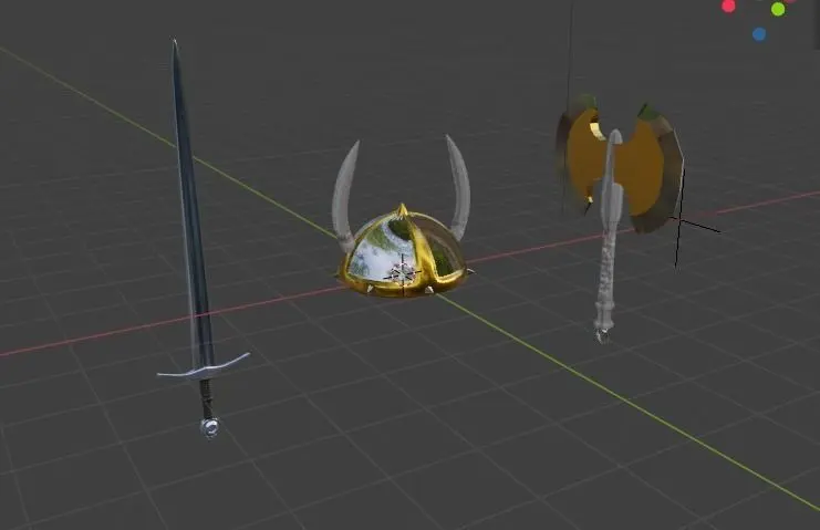 Viking package (sword,helmet,axe)it contains a shiny sword and a helmet and an axe