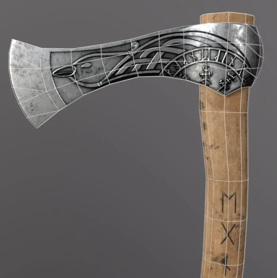 With just 588 tris and 296 verts, this Viking axe delivers outstanding visual impact while keeping the performance in check. Whether you're creating an epic video game, a captivating animation, or an immersive virtual reality project, this Viking axe with crow rune engravings will be the perfect addition to your scene.