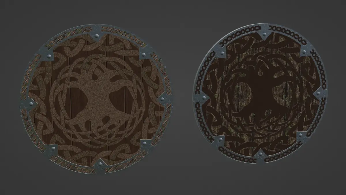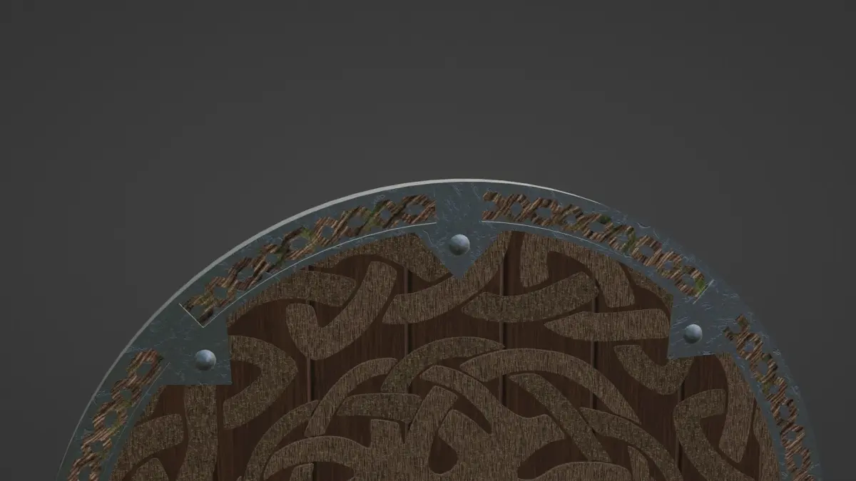 This model was created in a way to make it look like a realistic viking shield. Preview images were rendered with Blender Eevee and Cycles.