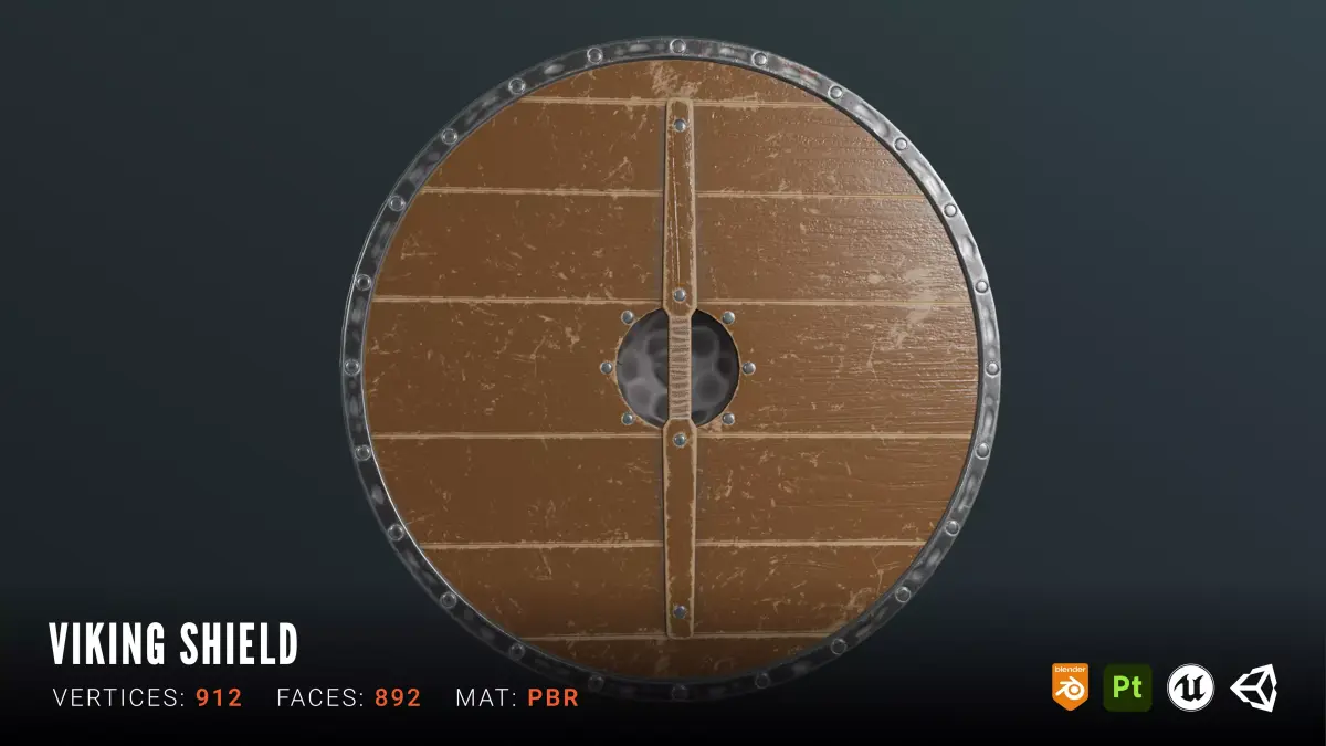 High-quality Viking round shield, fully game-ready and optimized for real-time projects.