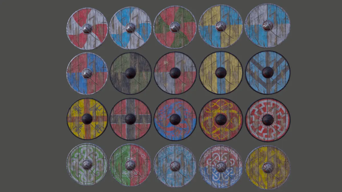High Quality Collection of 2 Type Viking Shield. For Unreal Engine Blueprints allow to select style of shield and allow to arrange damage intensity and roughness. Shield_02 Blueprint has 20 different of paint and 2 different kinds of metal for shield mesh. Inside the blueprint and material editor, information are given to how to make blueprint functional. For Unity, Shield_01 Mesh has 20 different of paint material and 2 different kinds of metal material. Also each shield has 2 different material variation. One for damaged version and one for fine version. Fits for game genres such as, Viking, Medieval theme, Open World.