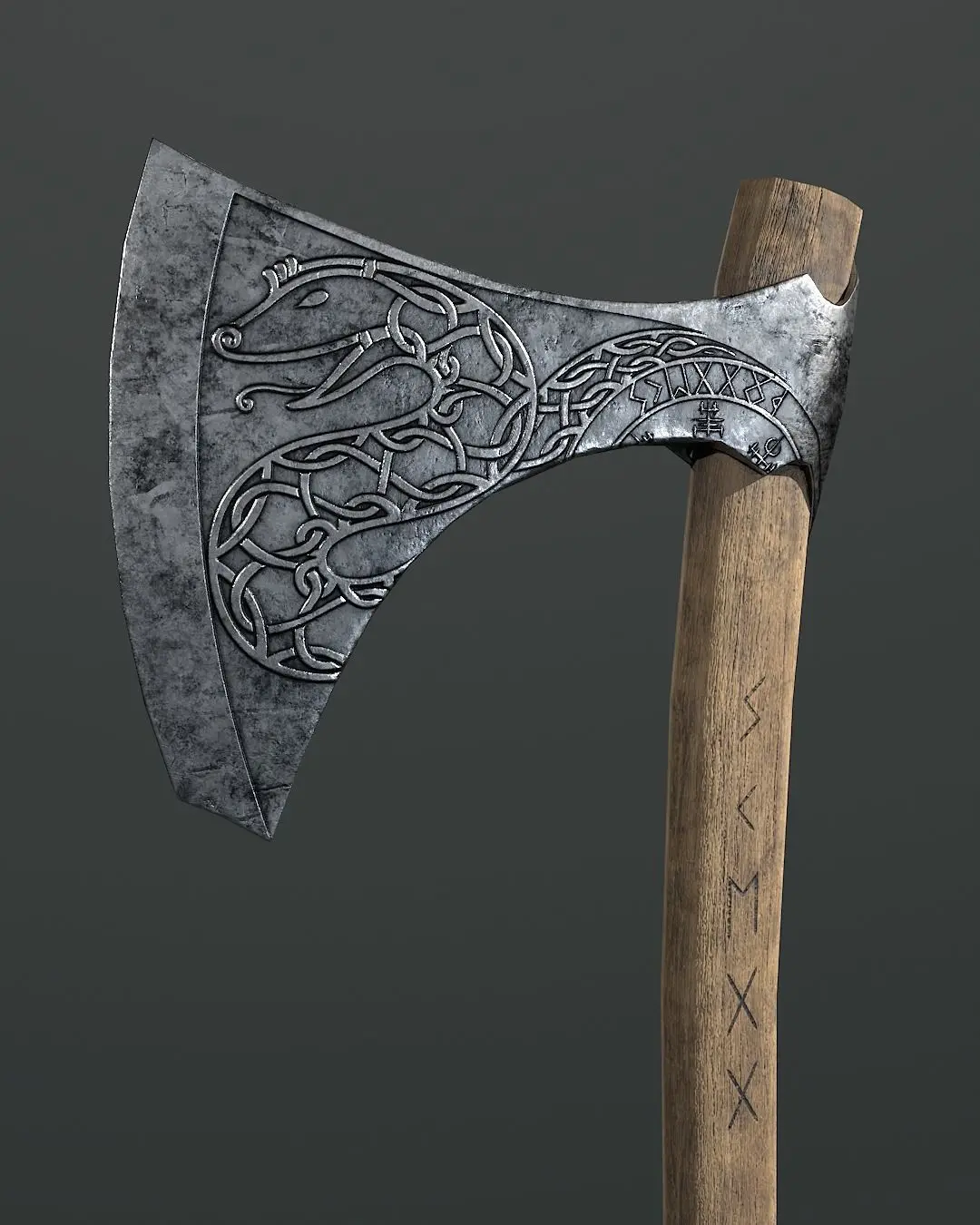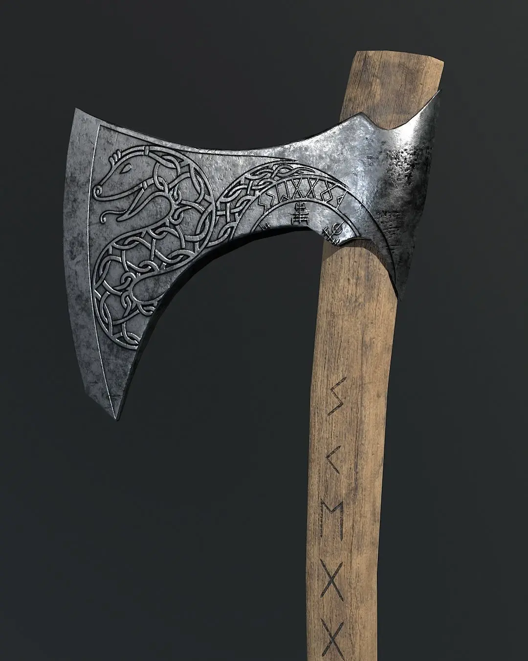 If you're looking for a high-quality model for your project, this Viking axe with serpent runes is an excellent choice. Add a touch of Viking mythology and power to your project today!