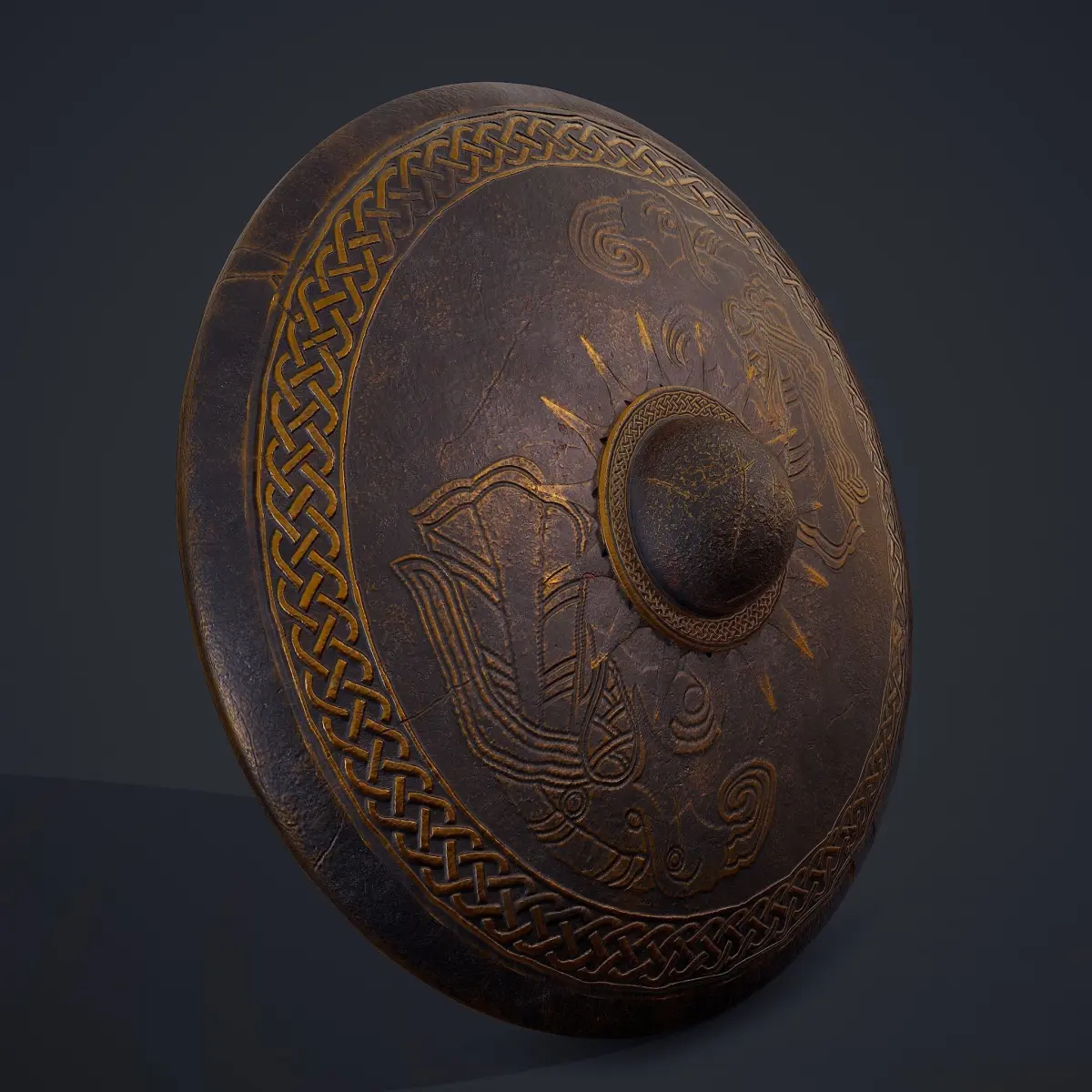 Viking Sun Shield 3D Model PBR Texture available in 4096 x 4096 Maps include : Basecolor, Height, Normal, Roughness, and Metallic. All Preview renders were done Marmoset Toolbag 3.08 Scaled to real world scale. Customer Service Guaranteed. From the Creators at Get Dead Entertainment. Please like and Rate! Follow us on FaceBook and Instagram to keep updated on all our newest models.