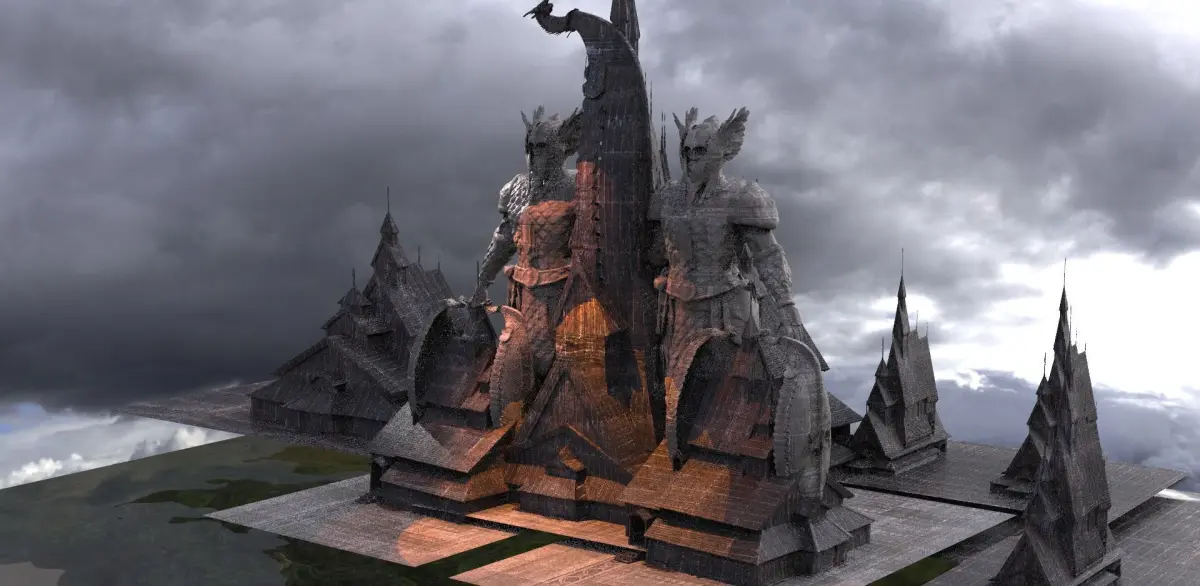 Viking Town with Statue of warrior 2 3D model