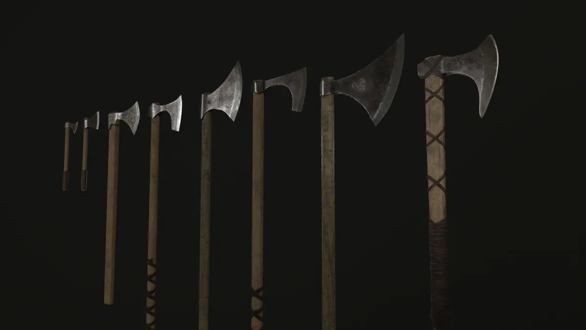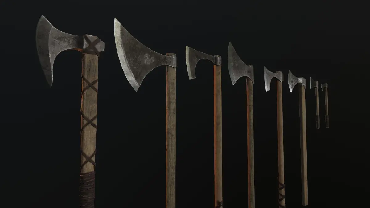 This pack includes historically accurate 4 swords with scabbards, 8 axes, 4 shields, 4 spears with lods and 4K textures. If you need 8K textures please let me know I will give you for free. Please note that each weapon gruop uses a shared single texture map which is great for optimization. For example, a group of 8 axes uses the same single texture. You can see a screenshot of texture in the gallery.