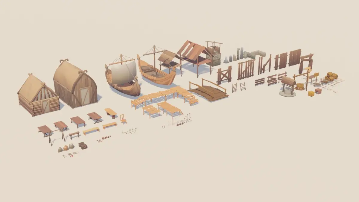 A low poly asset pack of buildings, props and environment assets to create a vikings based polygonal style game.