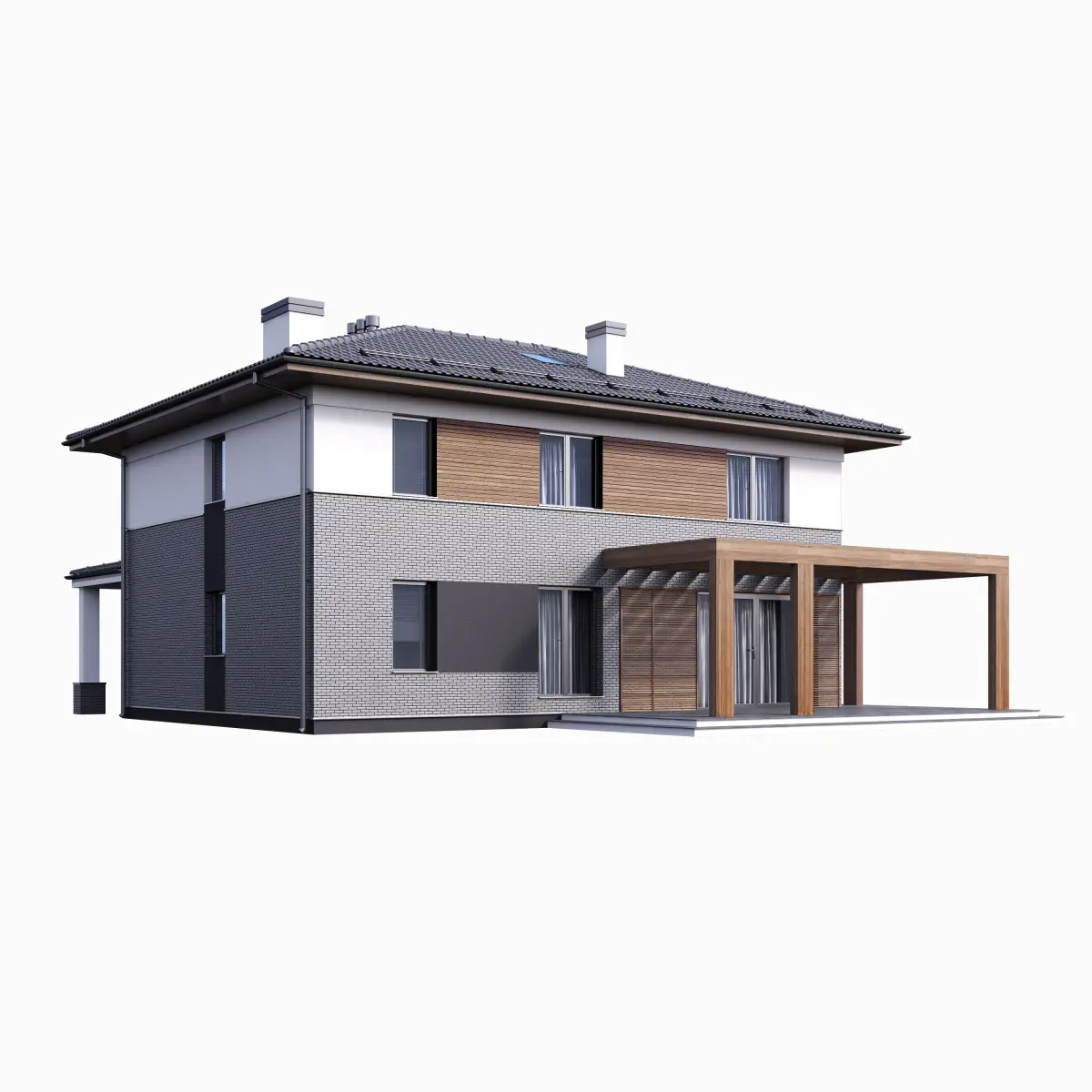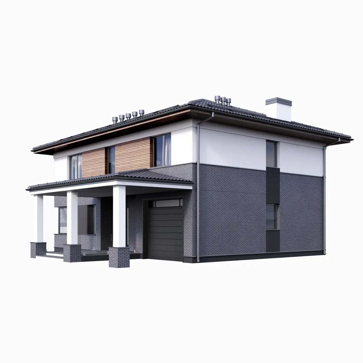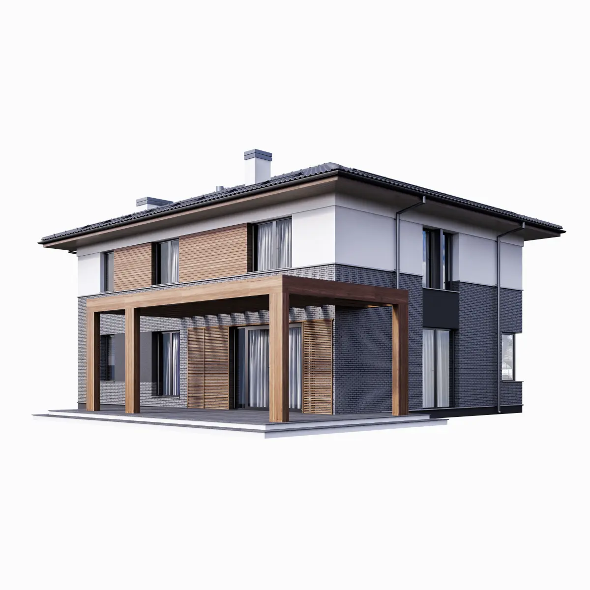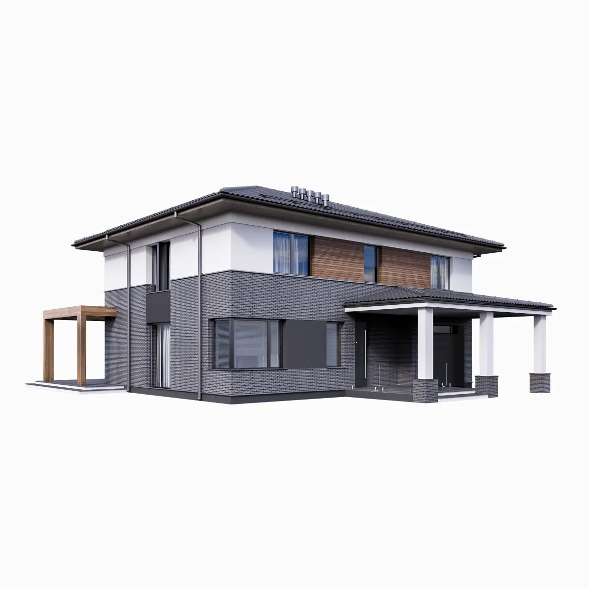 Photorealistic high detiled 3d model of contemporary home. Model does't include interior, just curtains and blinds in front of windows.