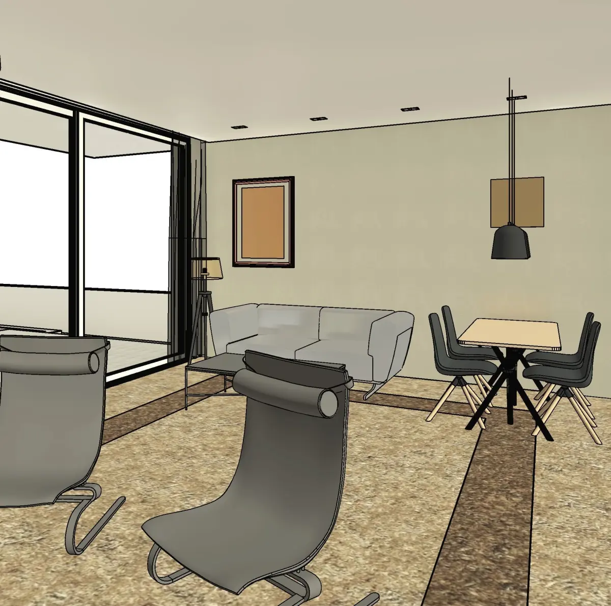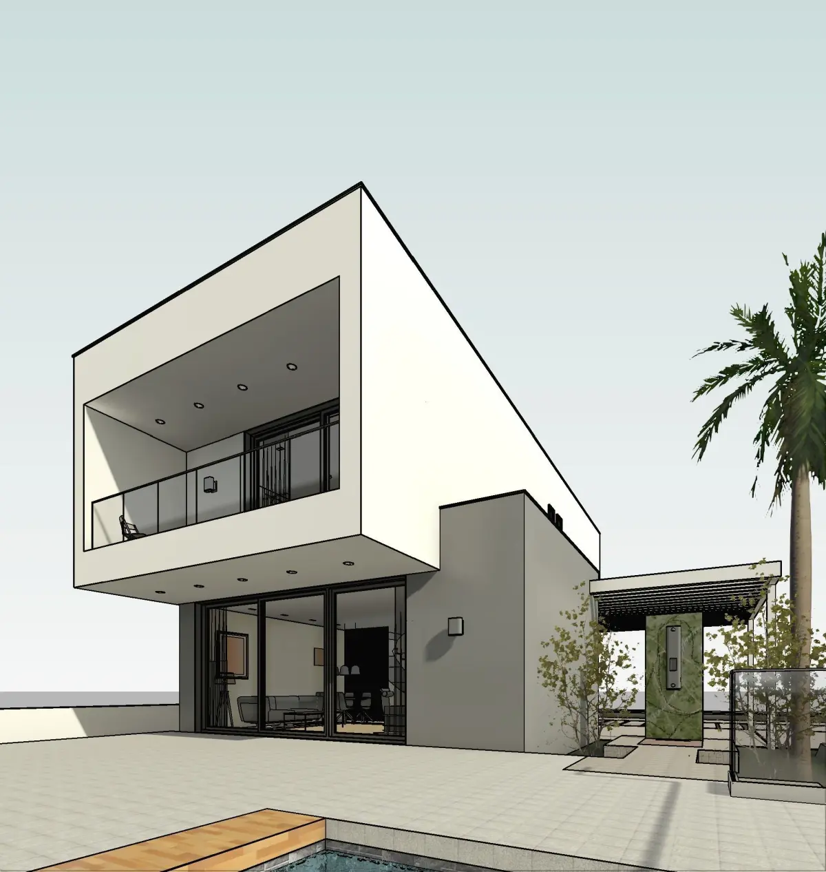 Two bedroom villa, model built in Autodesk Revit 2021, all objects are Revit adjustable families.Enjoy!
