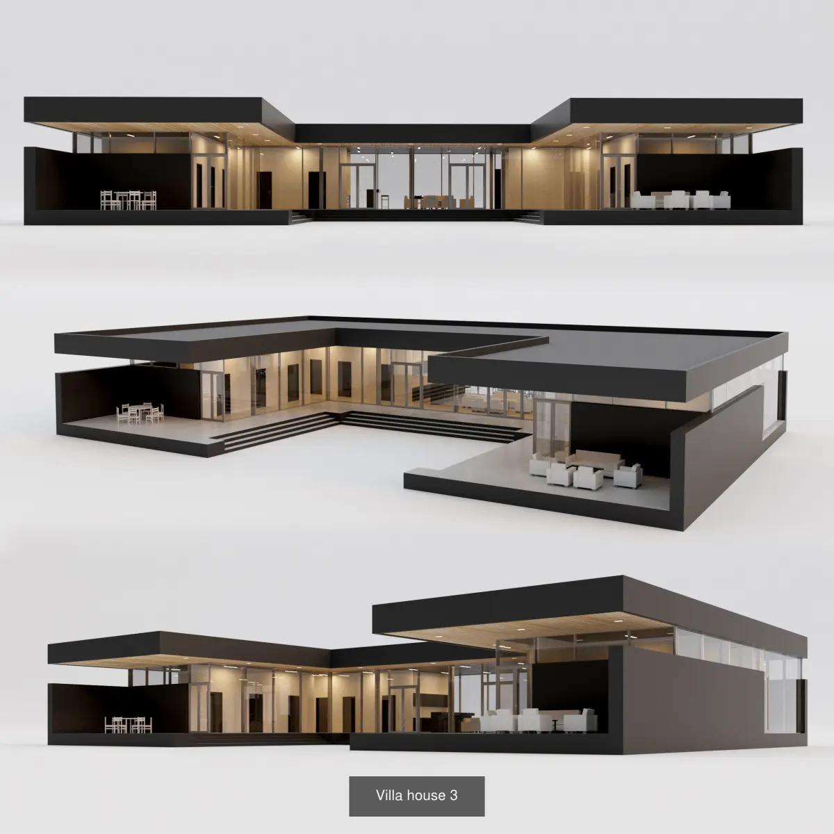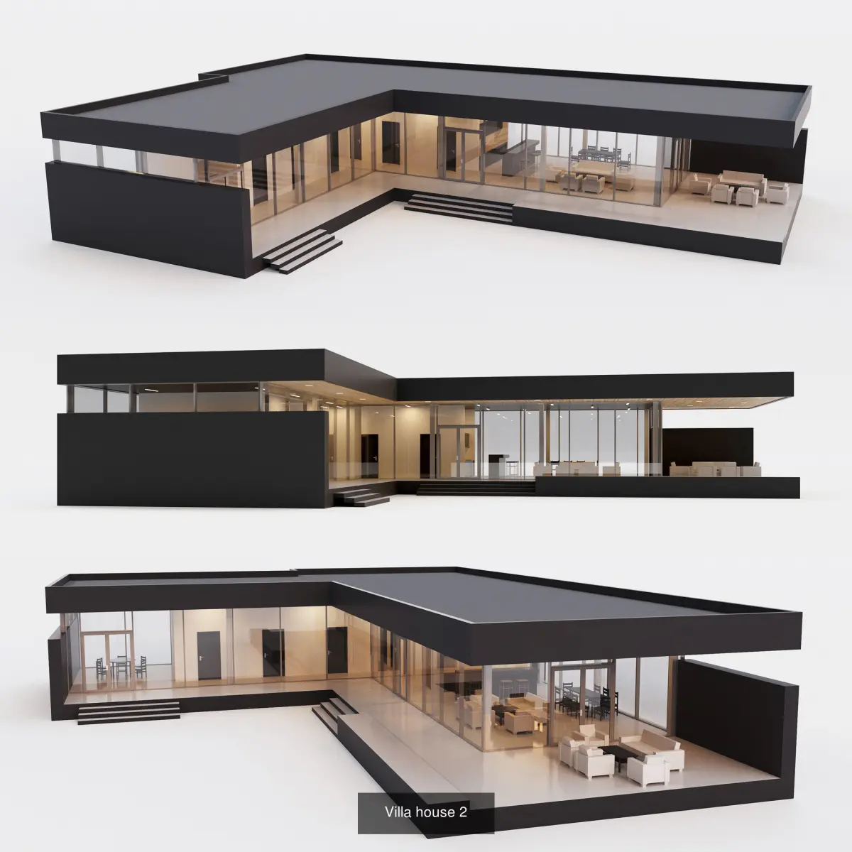 Collection of residential buildings, villas. Standard corona visualization using an HDRI sky map. The model is very light.