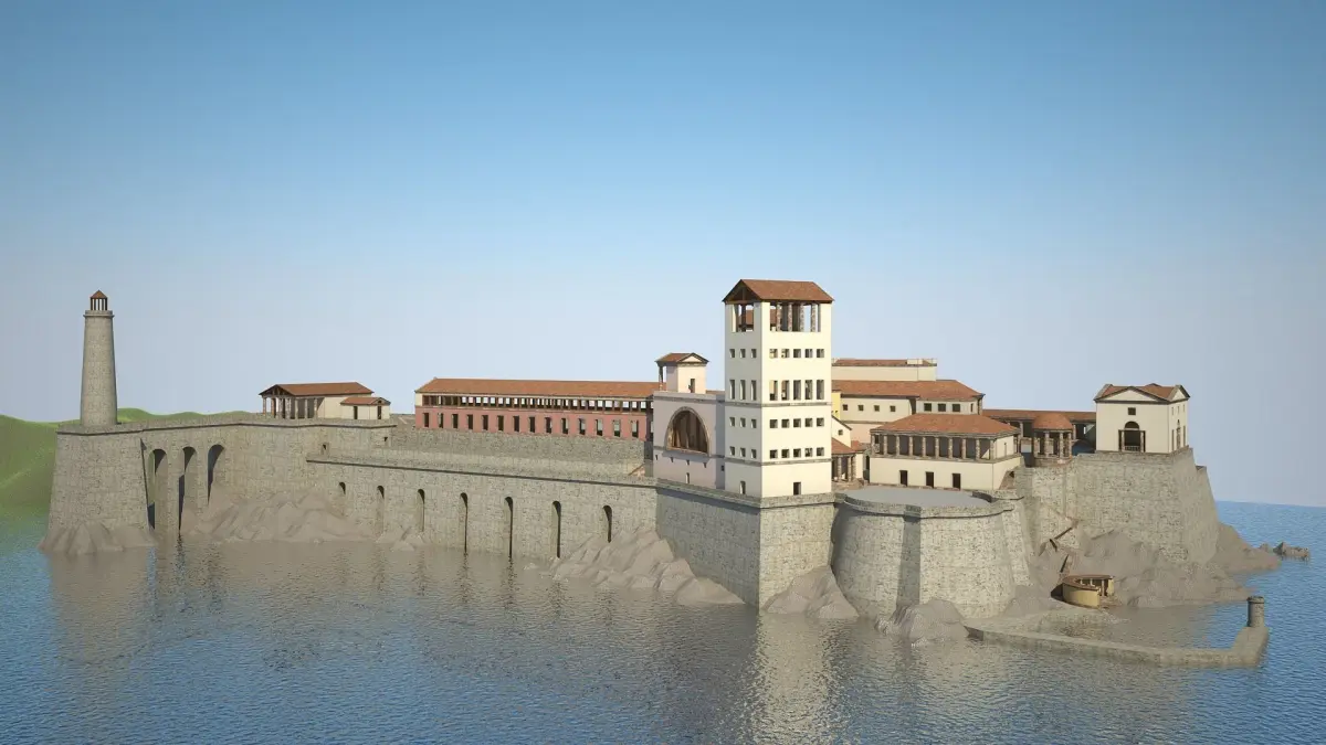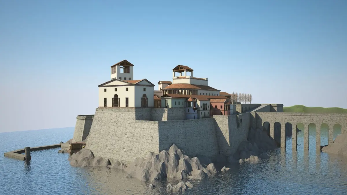 Model of a village. Preview images have been rendered with VRay.