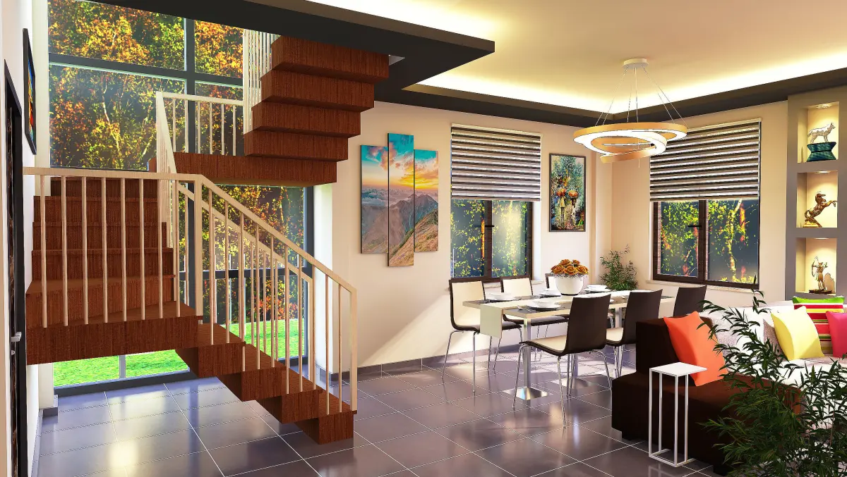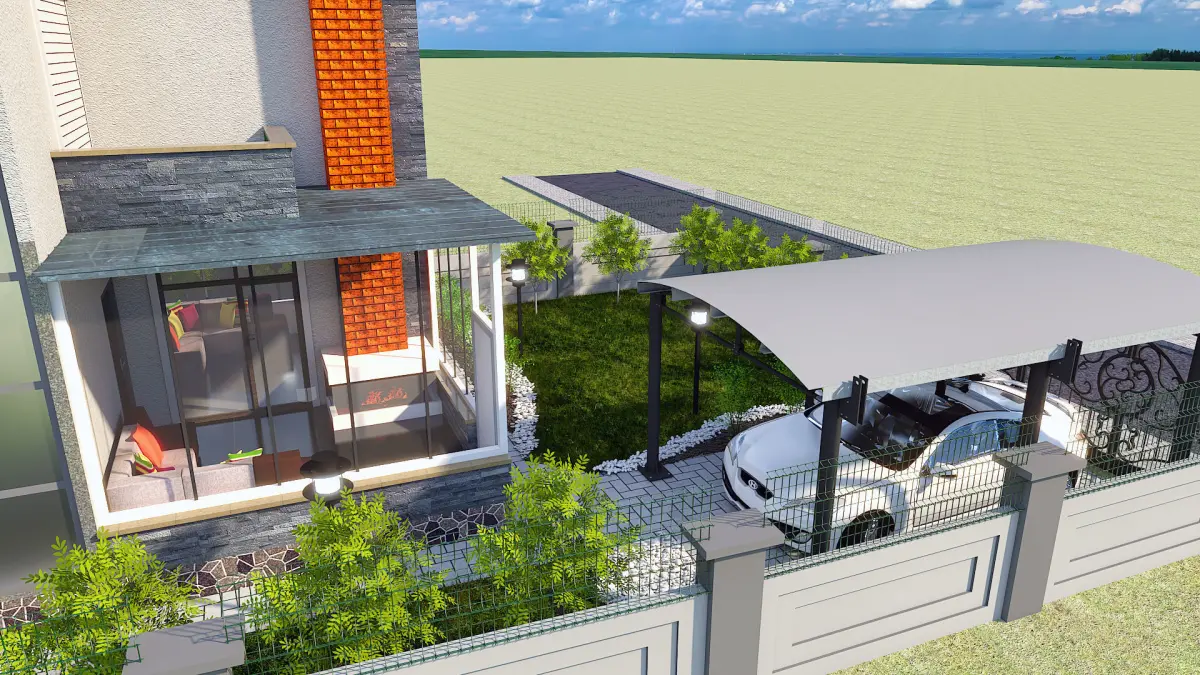 Hello.I am the architect Salih.I share my villa design, which I'm working on intensively. The price is very reasonable. I hope it works for the users.I used vivid color and materials in this design.I designed the villa both interior and exterior as minimal and modern.I designed a fireplace on the entrance patio of the villa and made it a winter garden with furniture and underfloor heating.In the interior I used a TV unit equipped with wooden staircases, red stone,decorative table,luxurious place lighting, modern wall decorative niches, spot lights and modern spots.In the exterior of the villa, I use pumice and dolomite stones decorated with oval designs, car shed, floor lighting.