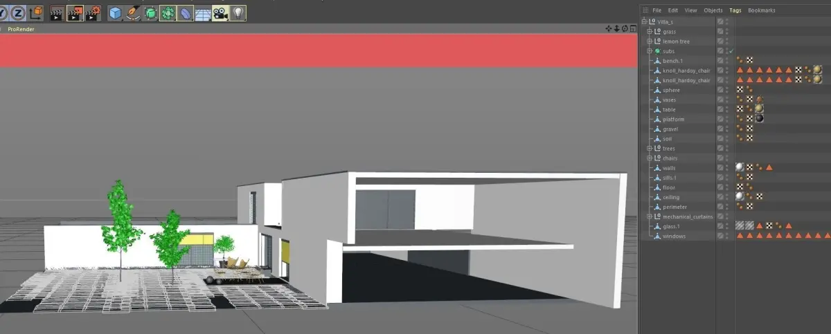 There are no materials or textures inside. If you need something specific write to me inthe inbox and we'll try to find something suitable.For those who have Maxwell as a rendering engine : if you download the Cinema4d file the grass comes with an easy multiplier that works with the Maxwell plugin.There are over 5million polygons but these are mostly coming from furniture and details from grees , grass or gravel. Plus windows are really detailed.