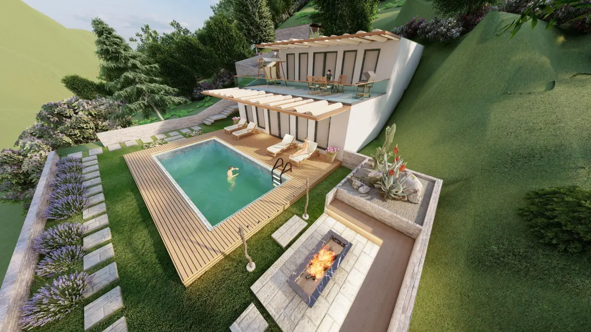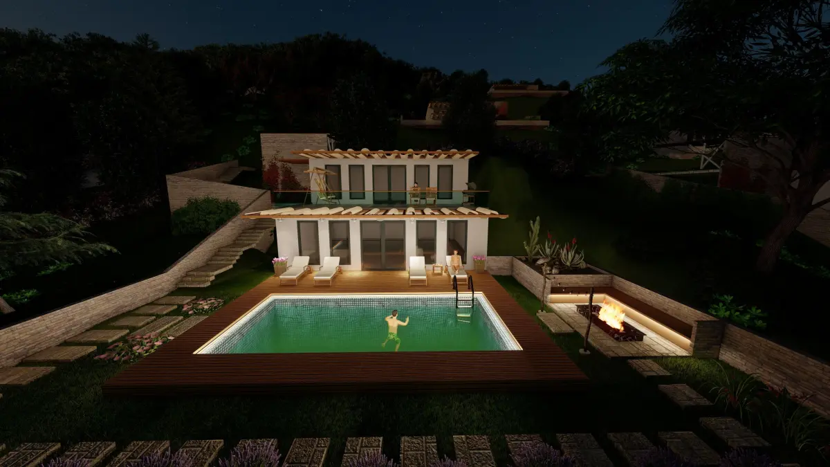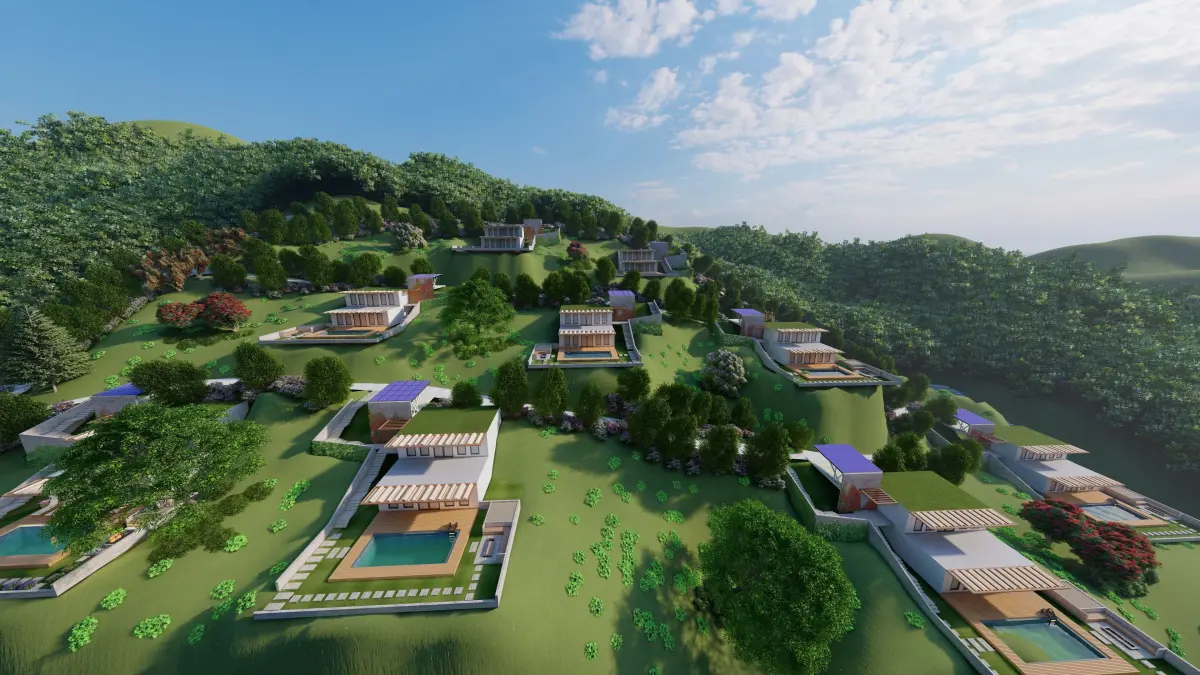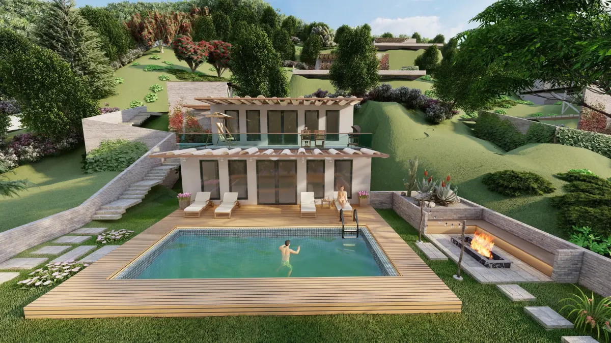 A site witch includes nine villas The villas have pools and sun pannelsHillside in natural area3d models in skp and ls11 formats - materials Not assigned! Animated in lumionNight render settings
