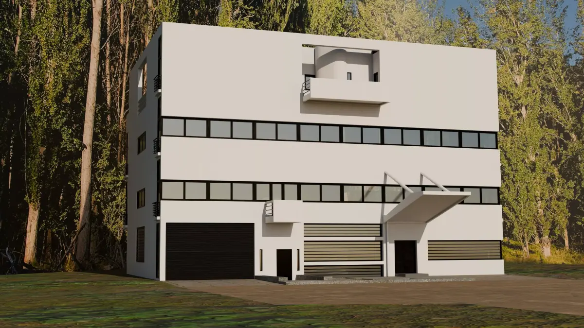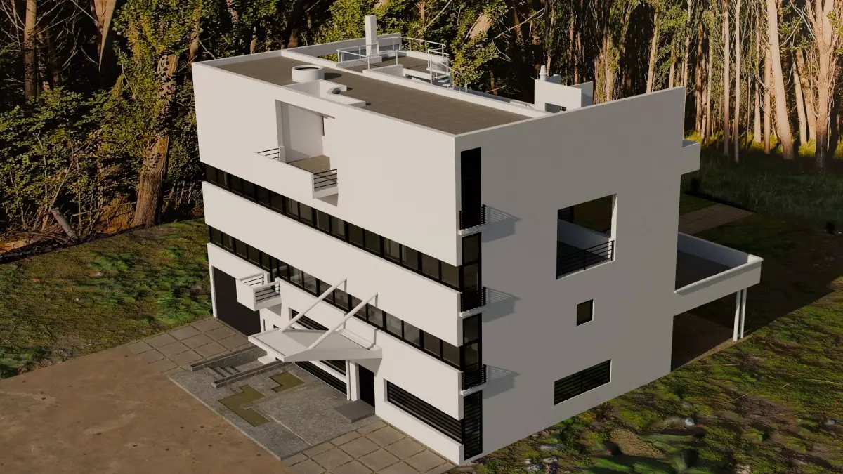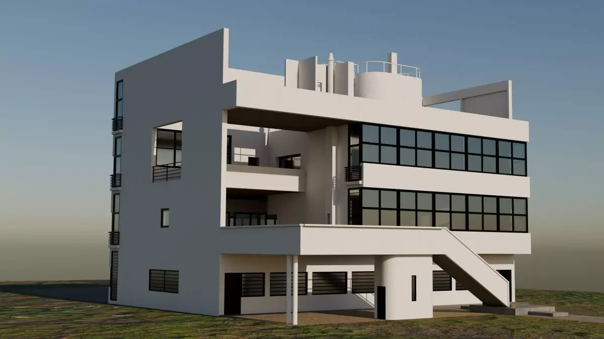 This is a scale model of the building designed by the architect Le Corbusier between 1926 and 1928 at Vaucresson, France. The building is also known as Villa Garches, Villa de Monzie, and Villa Stein-de Monzie.