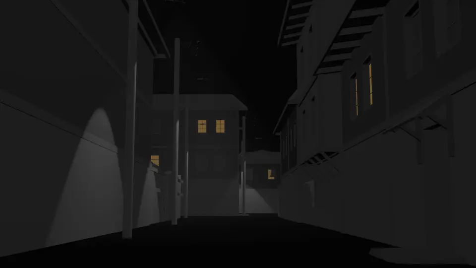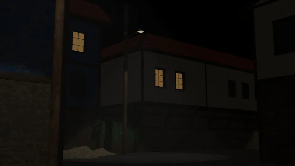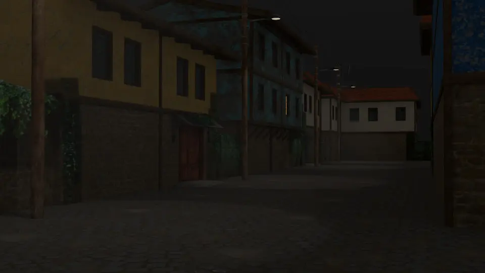 Old village streets illuminated by street lamps. Modeled with Blender-3d. Presented as a ready package (Fbx, obj, textures). You can download it with .blend to edit and add as you wish. It is ready for your game and animation projects.