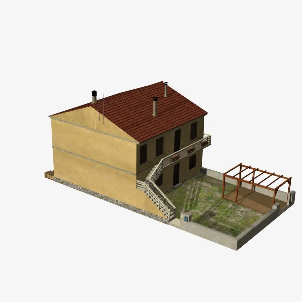 Country village home with garden.The supplied 2600 Kb file includes all necessary textures and materials; its dimension reduces to 470 Kb only in case texture images are removed.