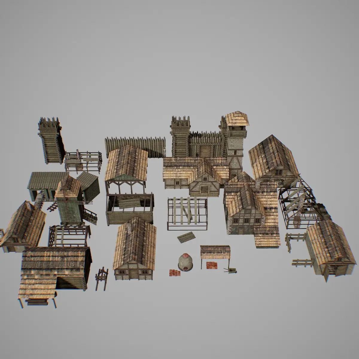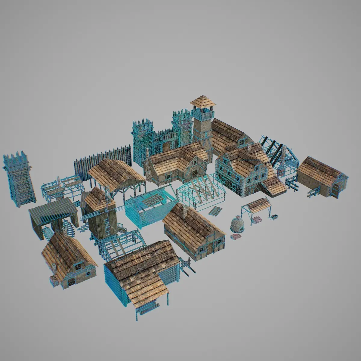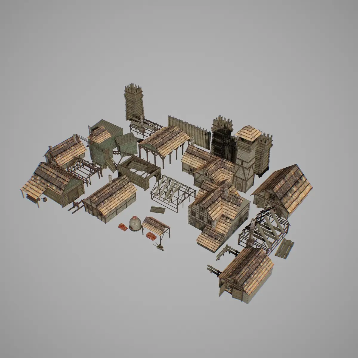 High-quality low-poly 3d model of the medieval Village. Buildings for create new worlds and new universes in the style of a medieval RPG. Level 1.The model is optimized for use in browser and isometric games. 3D model has all the necessary texture maps for PBR renderer.All textures included.Real world size (meters).