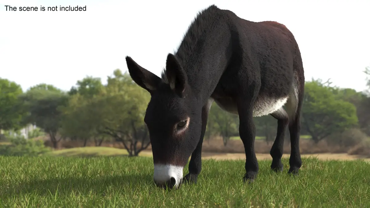 Village Load Donkey Dark Brown Fur Rigged is a three-dimensional model of donkey, showcasing the animal in a lifelike manner, perfect for both educational and decorative purposes.