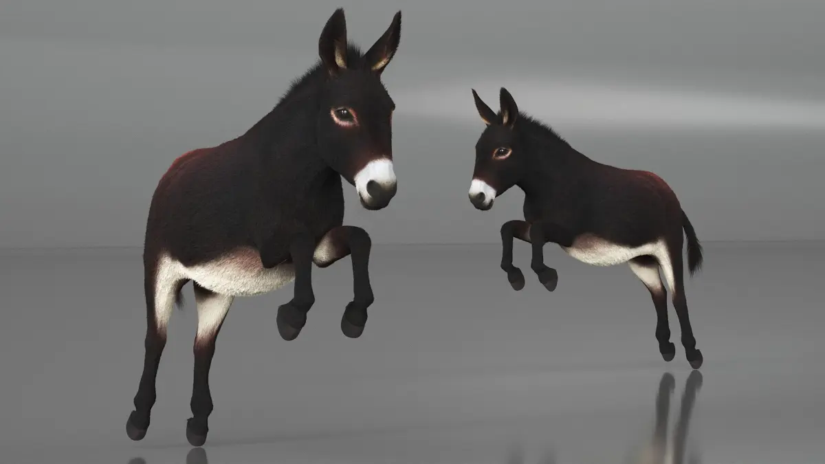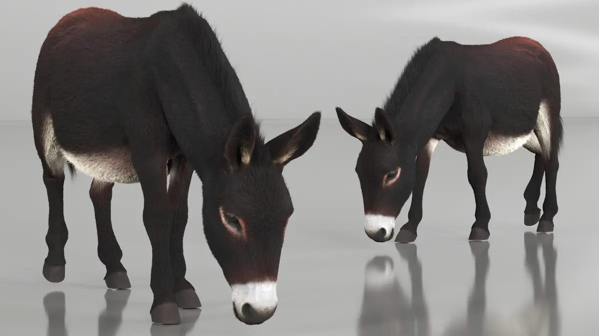 Village Load Donkey Dark Brown Fur Rigged for Maya is a three-dimensional model of donkey, showcasing the animal in a lifelike manner, perfect for both educational and decorative purposes.