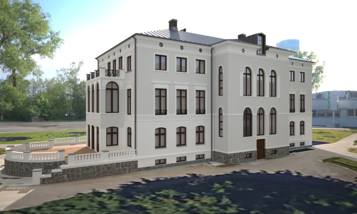 Exterior model of Villa In Helsingborg Sweden built 1848 and have gone thru some changes over the years. Model is built out from original blueprints with some modifications.
