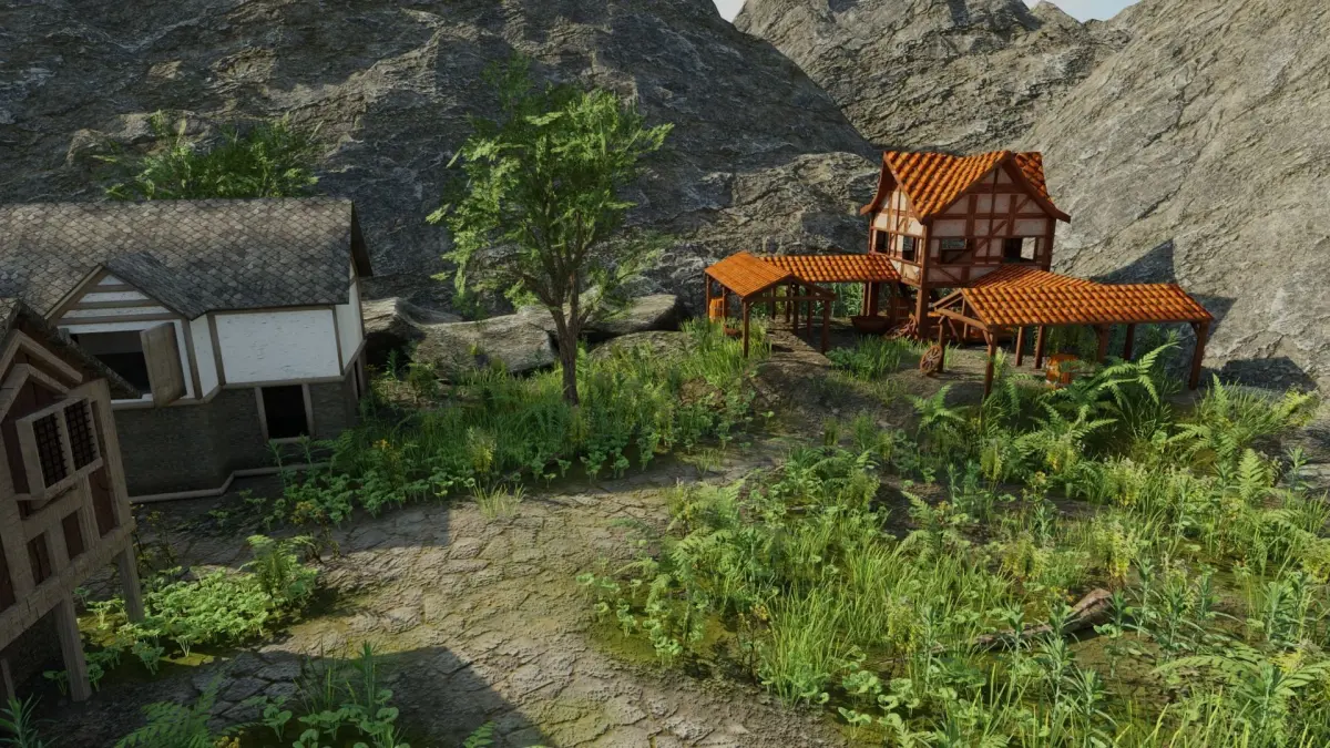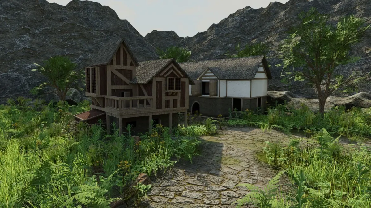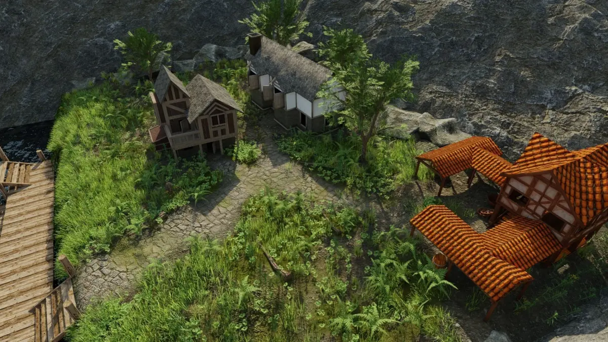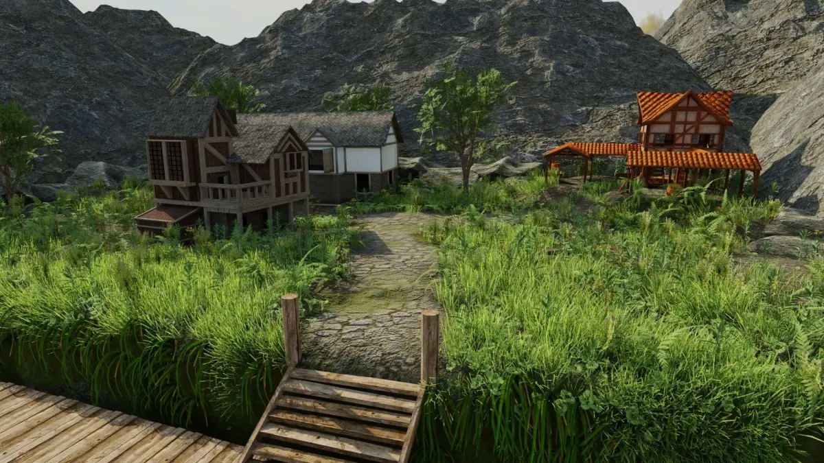 Scene Made In Blender 2.83.Small Villiage near sea/river.
