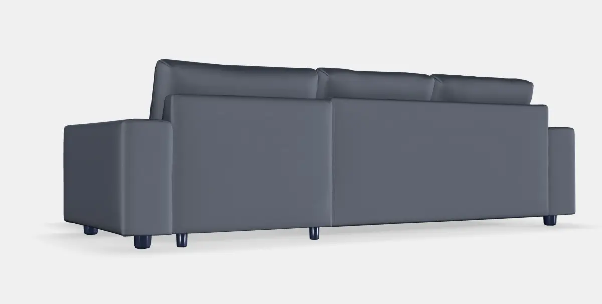 Bring your project to life with the VIMLE 3-seat sofa with chaise longue 12, designed to deliver an exact representation of the original object. This model features top-tier polygonal accuracy, complete with all materials and textures applied. Perfect for both product visualization and animation workflows, this asset promises to integrate smoothly with your existing pipeline.