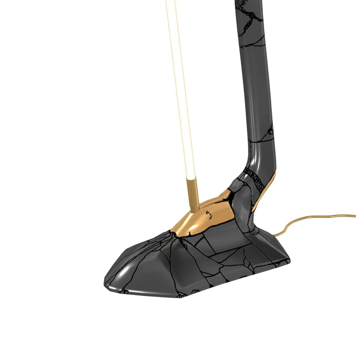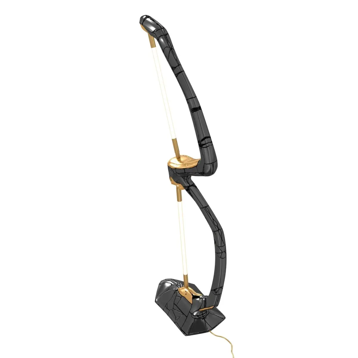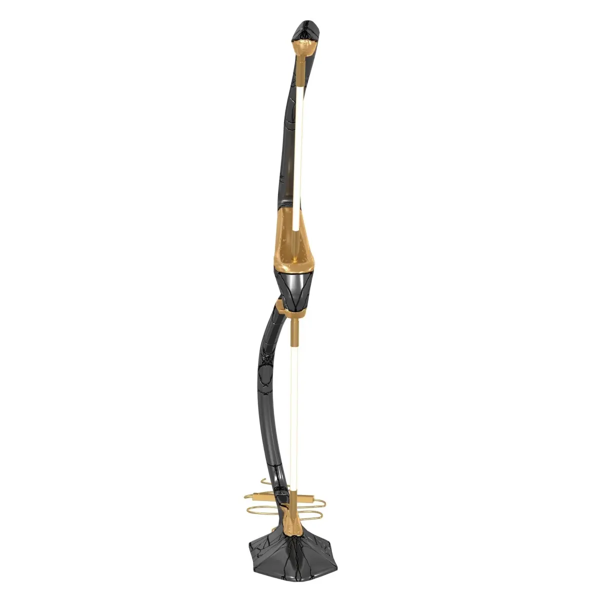 Vincenzo De CotiisHis work represents a winding path that often doubles back upon itself, one fuelled by parallelisms of space and time, cultural layerings and quantum leaps. A process imperceptible to reason and intellect, yet manifested through the materiality of his countless works.Vincenzo De Cotiis speaks of the impelling need to seek new manifestations that can conflate archaic idioms with futuristic expressions. His creations are born out of an assembly of recovered materials and reflective, futuristic surfaces and appear evocative in their final form.DescriptionExhibited at Design Miami/ 2021 DC1824 Floor Lamp by Vincenzo De Cotiis.Made from: Cast BrassProduct DetailsMaterial/BrassColor/BlackHeritage/ItalyShips From/USADimensionsWidth/175 cmLength/60 cmHeight/30 cm