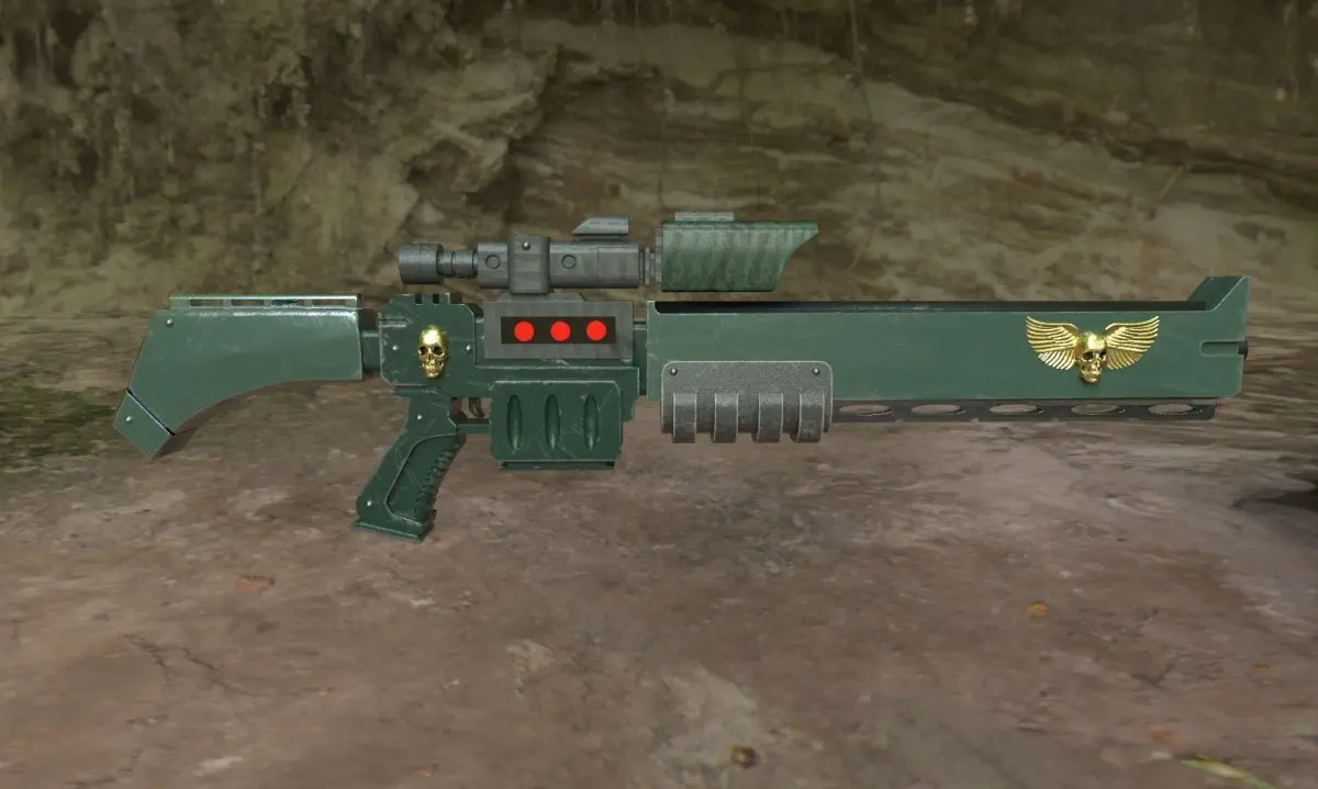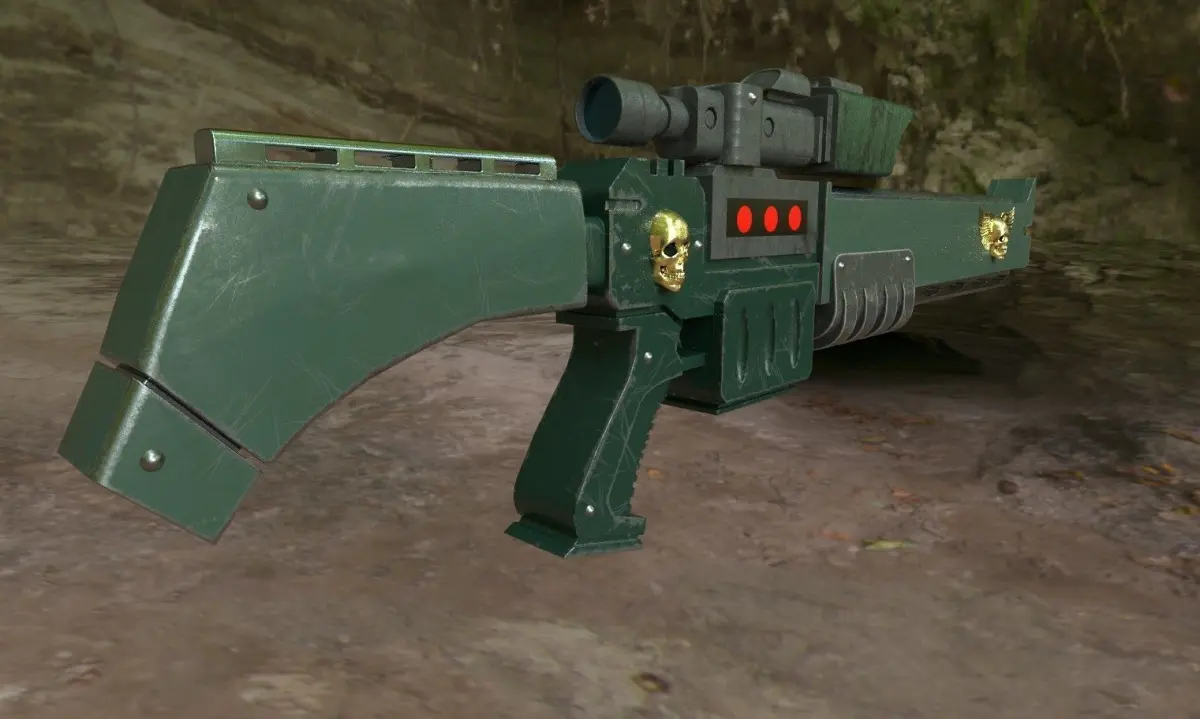 Vindiacre assassin's exitus rifle from the warhammer 40k fictional universe, modeled in blender and textured in substance painter, highly detailed with great topology, can be used in highly detailed animations and even games.