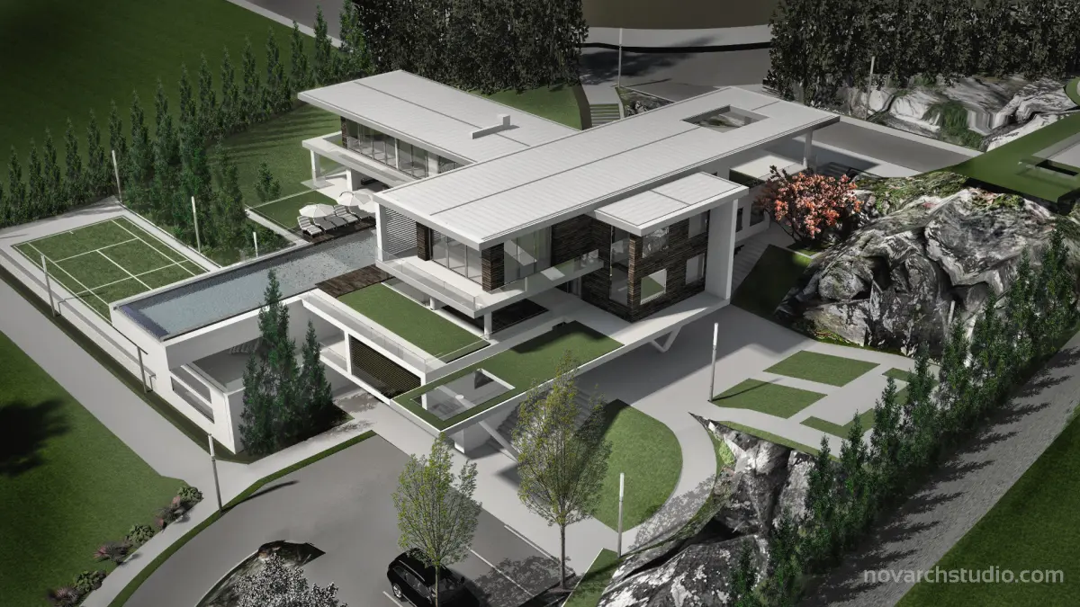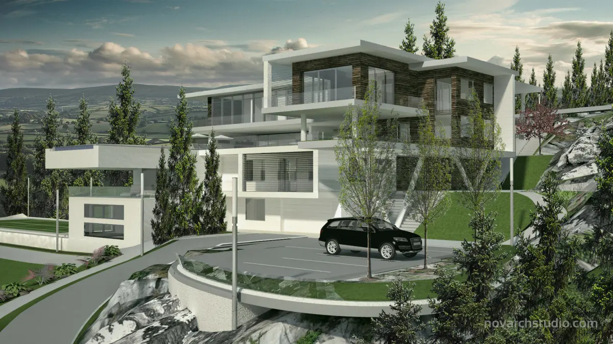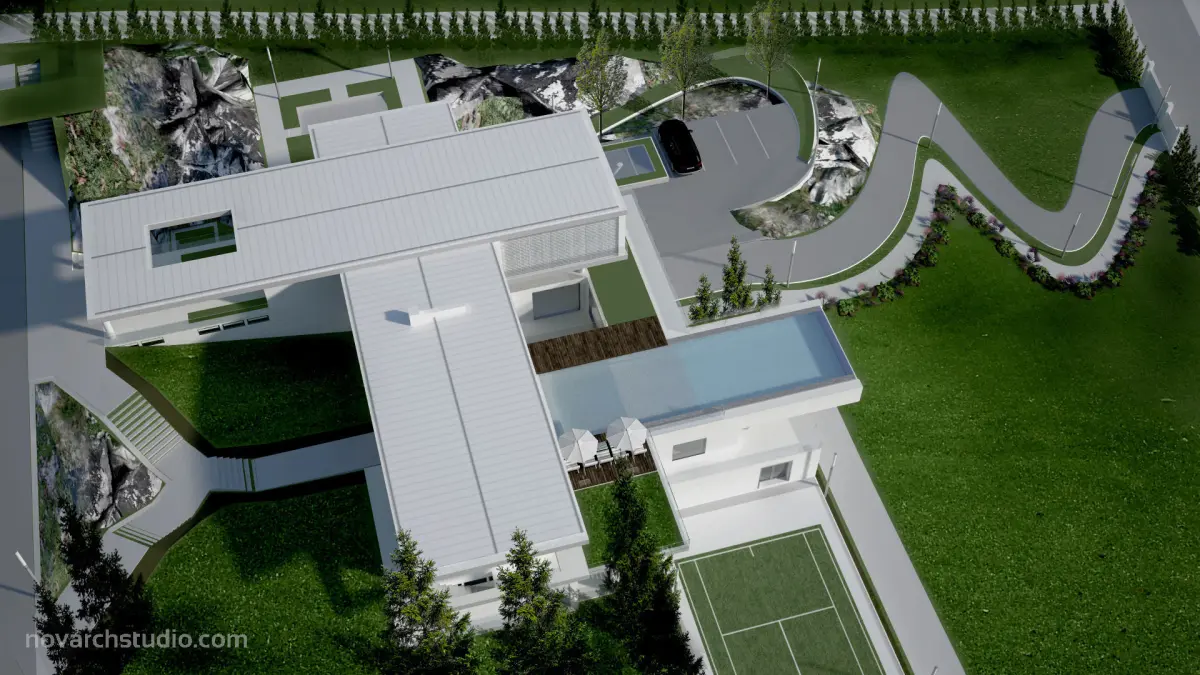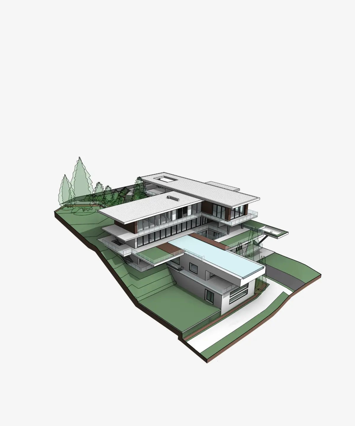 Located on a rocky hill with commanding views of the surrounding landscape, this villa is designed to be sensitively integrated with the landscape while still capturing the power of its prominent siting.