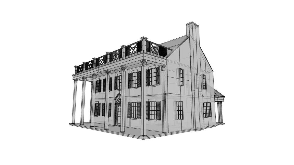Detailed exterior and basic interior of a vintage plantation-style house. Texture map not included, however layers are organized into default materials (brick, paint, siding, etc.) in the native Rhino format. Details such as ornate railings, shutters, and other ornament are fully modeled. Perfect for quickly building a convincing environment for games, animations, or other projects.
