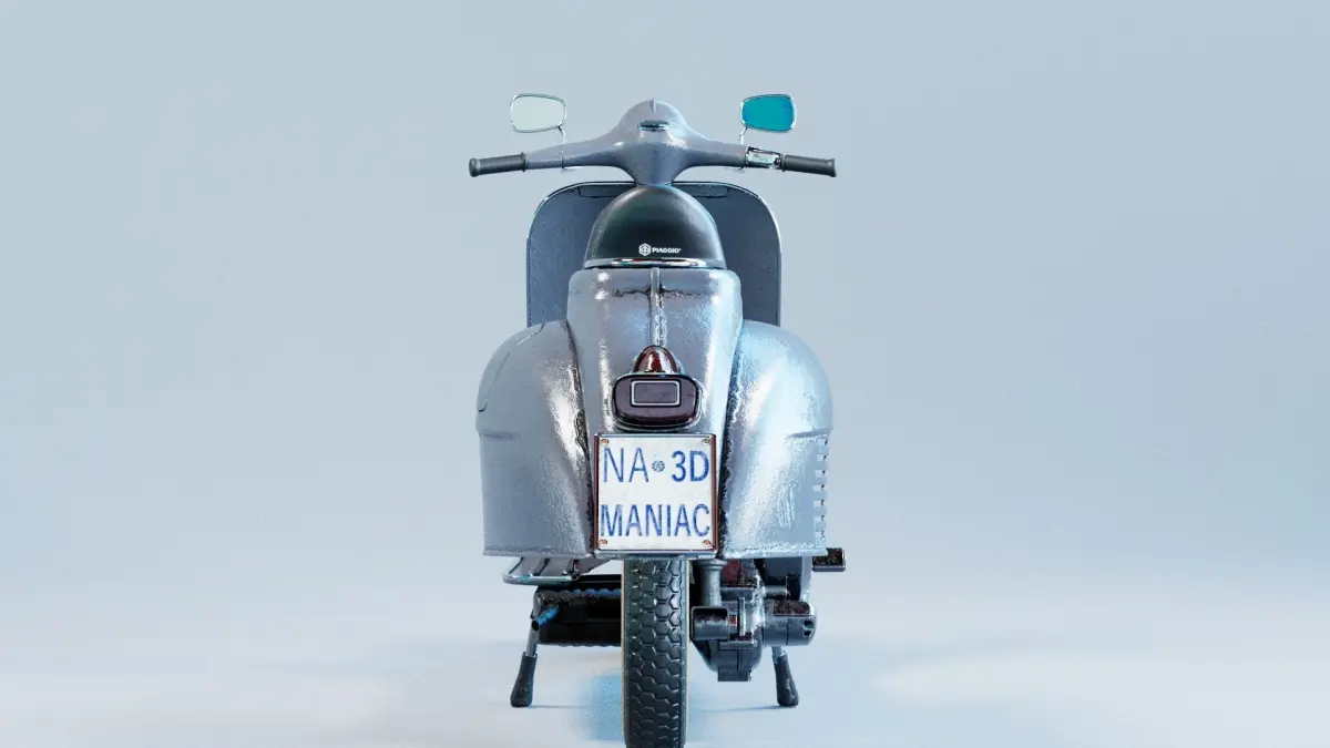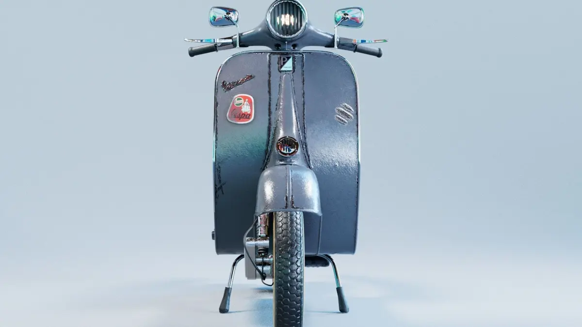 Realistic Textures: Textures have been expertly crafted using Substance 3D Painter. Each surface has been mapped with high-resolution textures that capture the natural aging of the metal, leather, and materials on the Vespa. Imperfections such as light rust and oil stains contribute to creating an atmosphere of authenticity and history.
