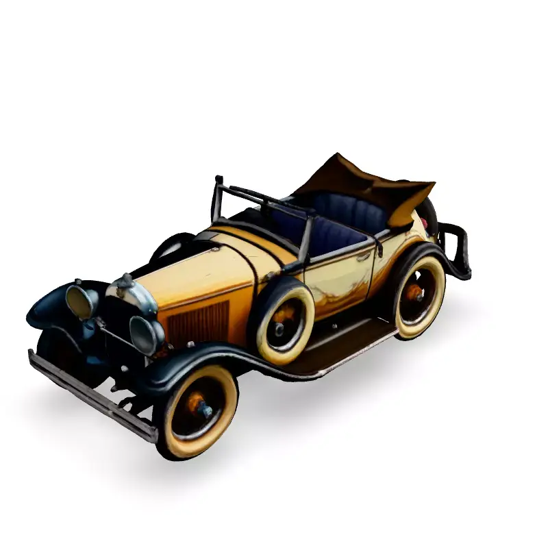 This highly detailed 3D model of a vintage antique convertible car is perfect for various applications, including game development, architectural visualization, and historical simulations. The model captures the classic design and weathered aesthetic of early 20th-century automobiles, featuring realistic wear and tear on the paint and bodywork. It's ideal for adding a touch of vintage charm to any scene. Supported file formats include GLB, OBJ, FBX, and STL. The model is optimized for both real-time applications and static renderings. It features clean topology, UV unwrapped meshes, and PBR textures for realistic material representation. Whether you're creating a period-accurate game, a detailed architectural visualization, or a stunning digital artwork, this vintage car model is a valuable addition to your 3D asset library. This car would be particularly suitable for a 1920s or 1930s setting. The model is also suitable for 3D printing, enabling enthusiasts to create physical replicas of this classic vehicle.