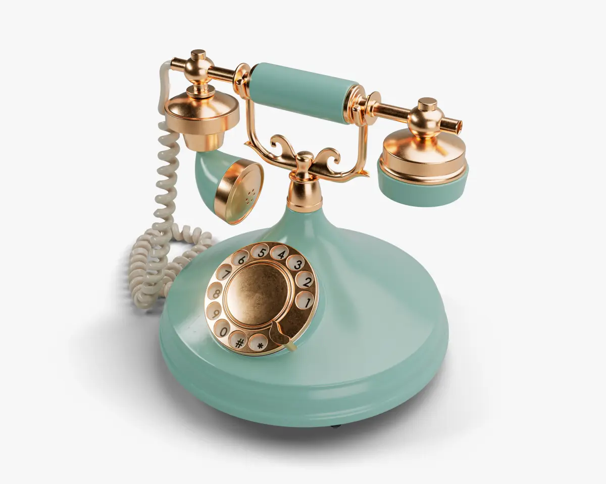 A vintage art deco turquoise and brass telephone with a handset and dial embellishmentsContains procedural and parametrized meshes which may translate to higher poly count than stipulated if converted to other formats.