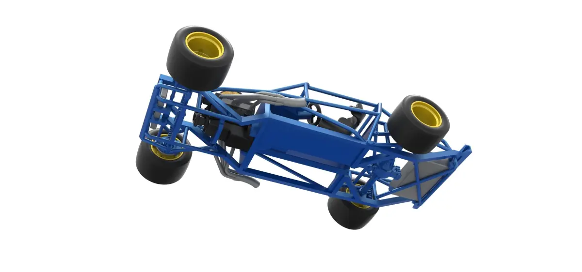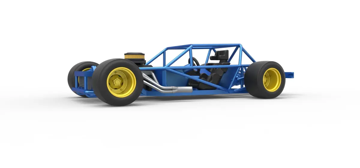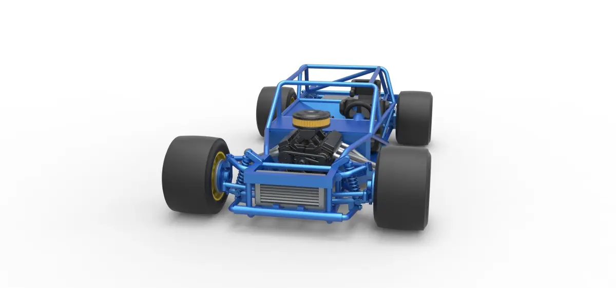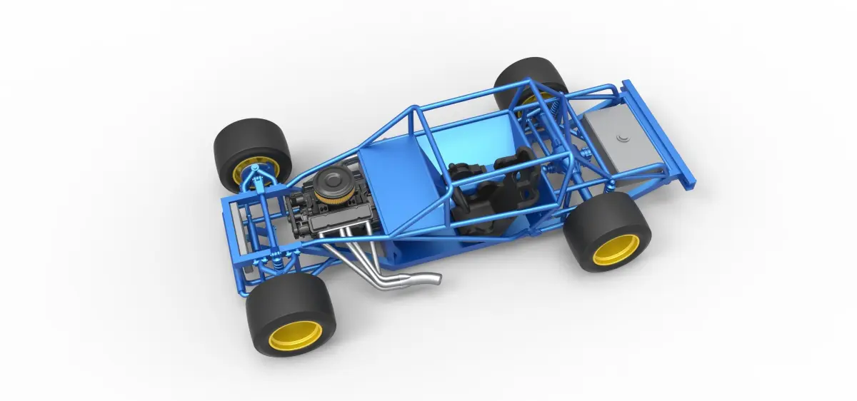 The model consists of parts: Body, Engine, Filter cap, Filter, Left exhaust pipes, Radiator, Right exhaust pipes, Rims, Seat, Shifter, Steering wheel, Tank, Tires.