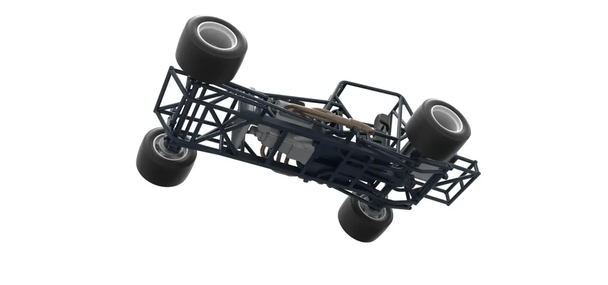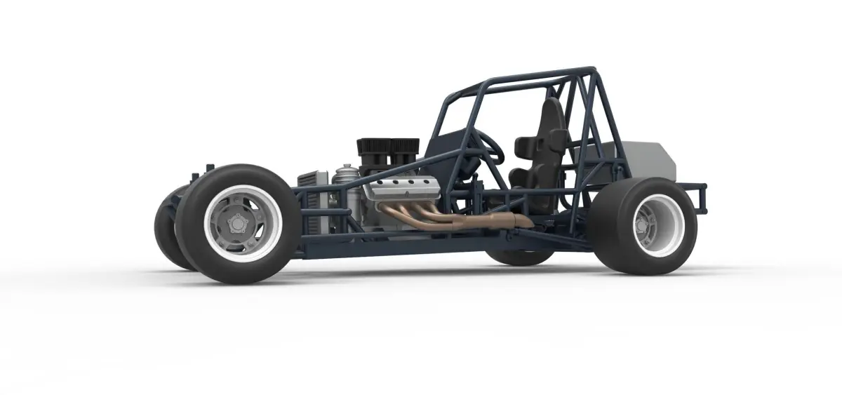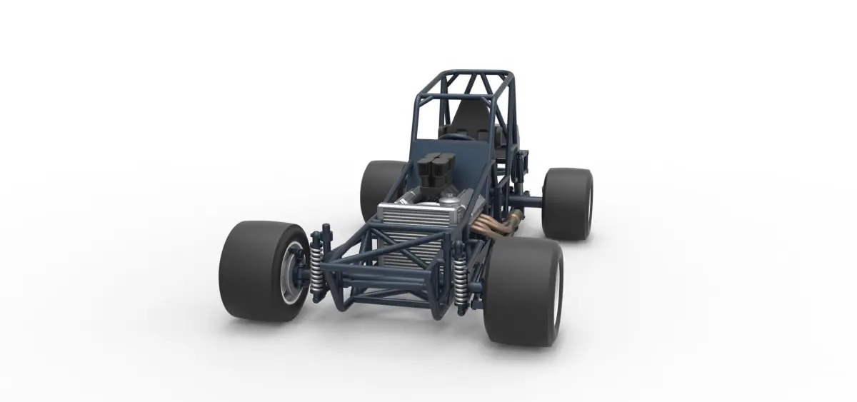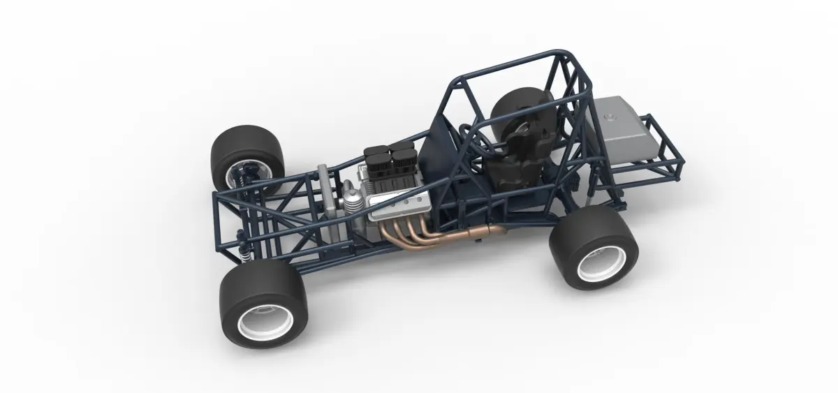 The model consists of parts: Body, Engine air intake, Engine left part, Engine main part, Engine right part, Left exhaust pipes, Radiator, Right exhaust pipes, Rims, Seat, Shifter, Steering wheel, Tank, Tires.