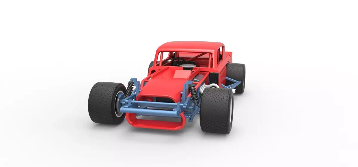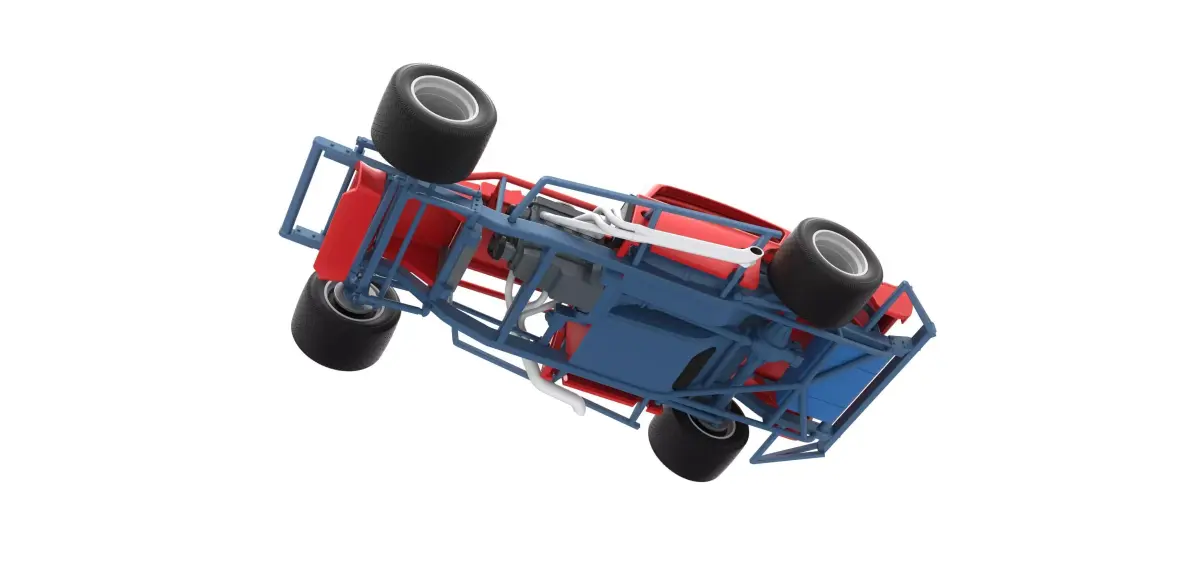 The model consists of parts: Air filter cap, Air filter, Engine, Frame, Front radiator, Front spoiler, Front wheel hubs, Hood, Left bumper, Left exhaust, Nose, Rear wheel hubs, Right bumper, Right exhaust, Rims, Seat, Shell, Shifter, Side radiator, Steering wheel, Tank, Tires.