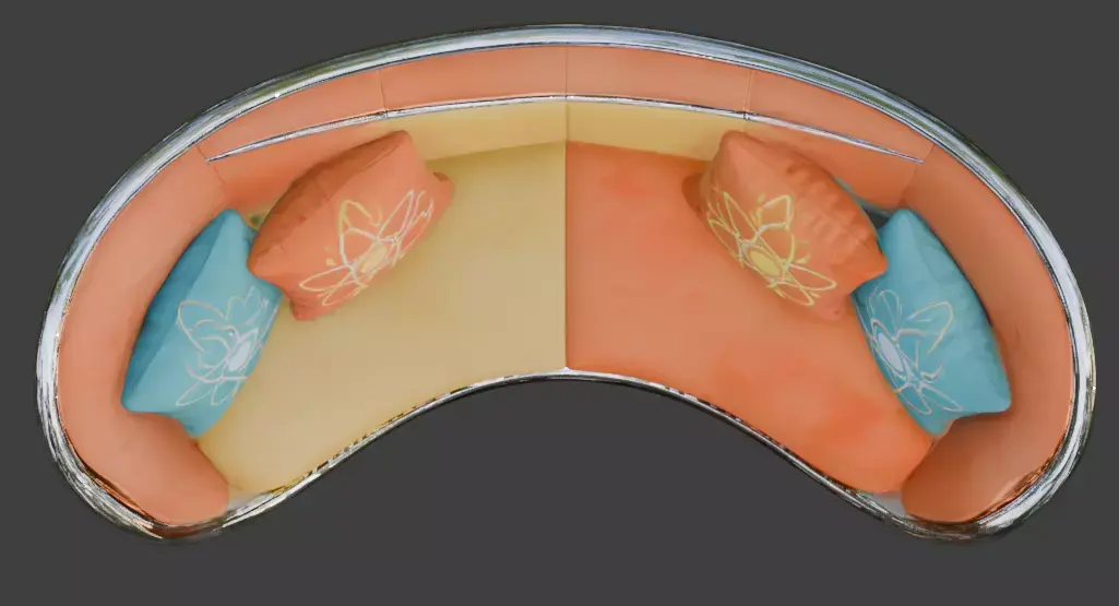 DescriptionThis high-fidelity 3D model features a luxurious retro-futuristic sofa inspired by 1950s Atompunk aesthetics and mid-century modern furniture design.