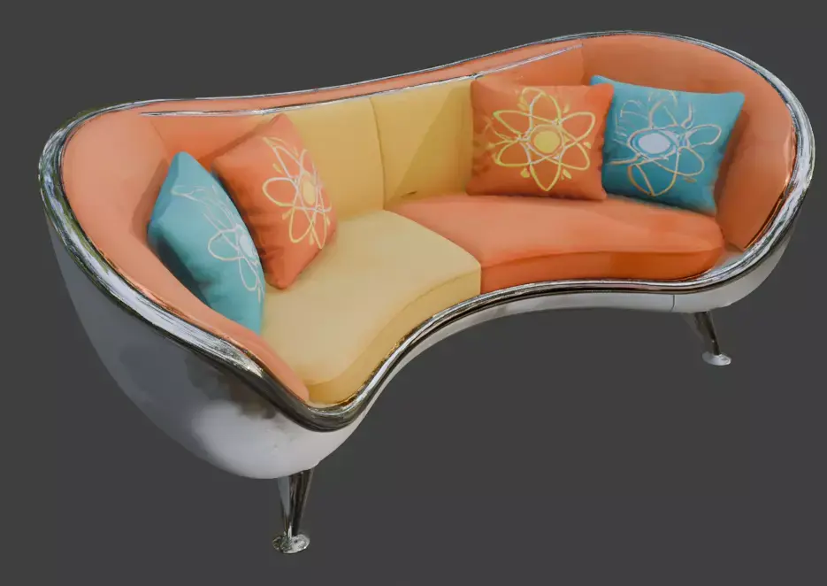 TagsAtompunkSofaFurniture3DModelRetroFuturisticChromeAtomicInteriorPBRGameReadyUnityUnrealLowPoly4KSciFiVintageMidCenturyCouchIndustrial