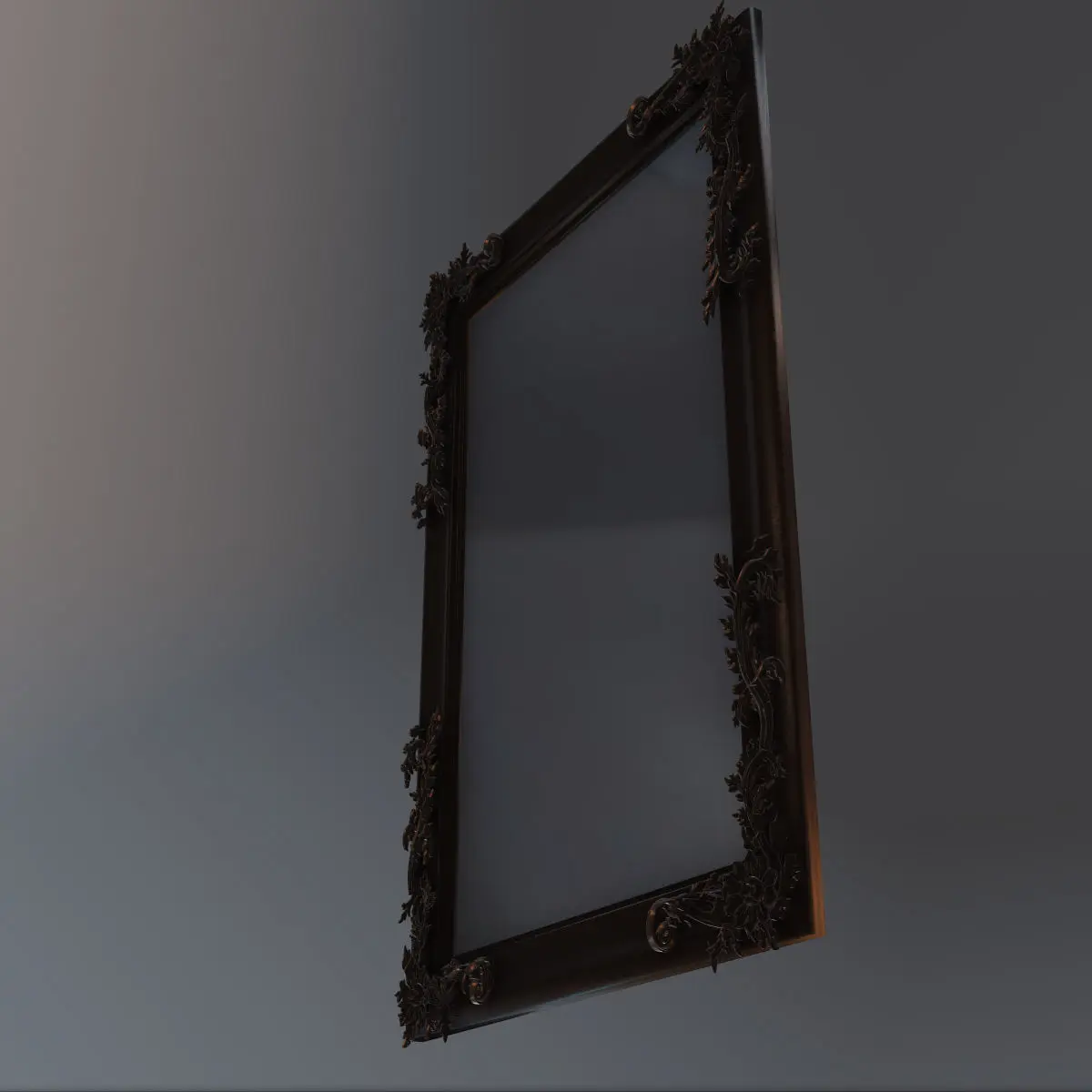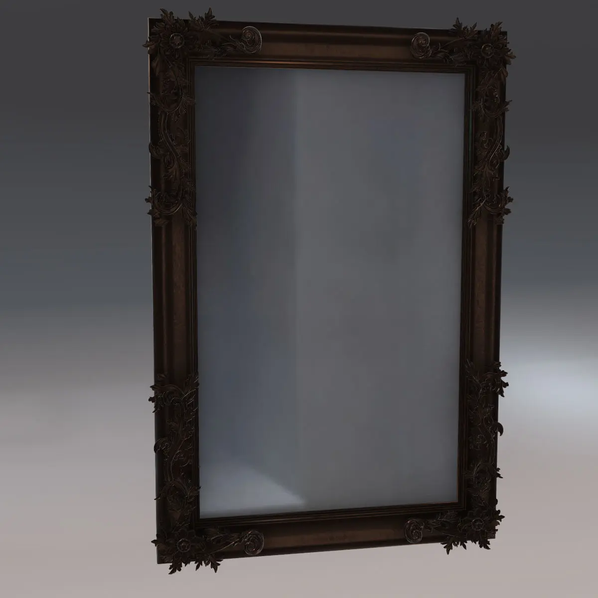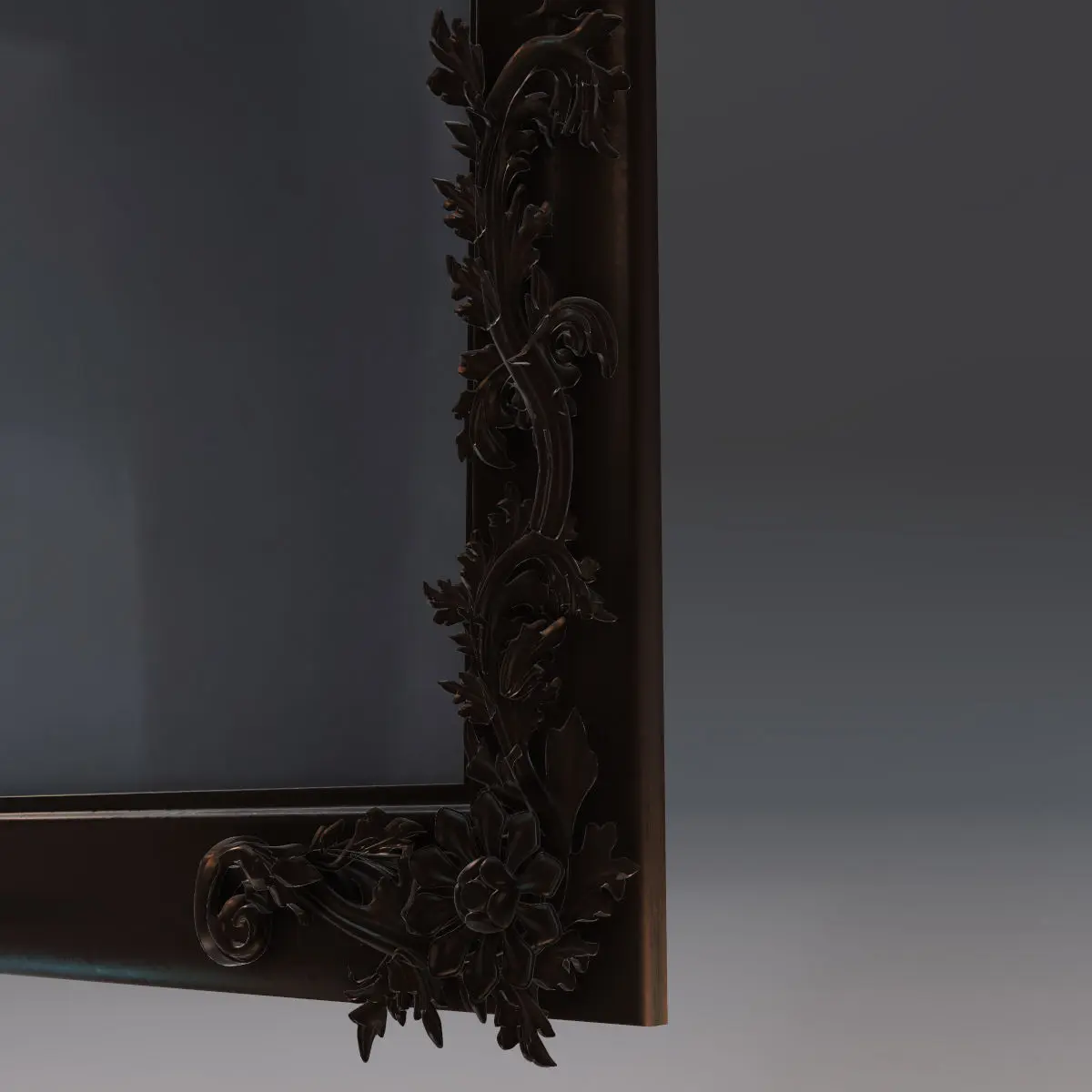 This is a Vintage Baroque mirror finished in rusted Copper. The frame is carved with characteristic flowers and leafs.