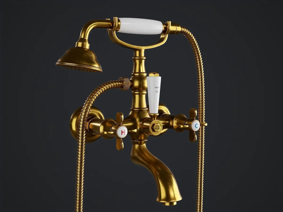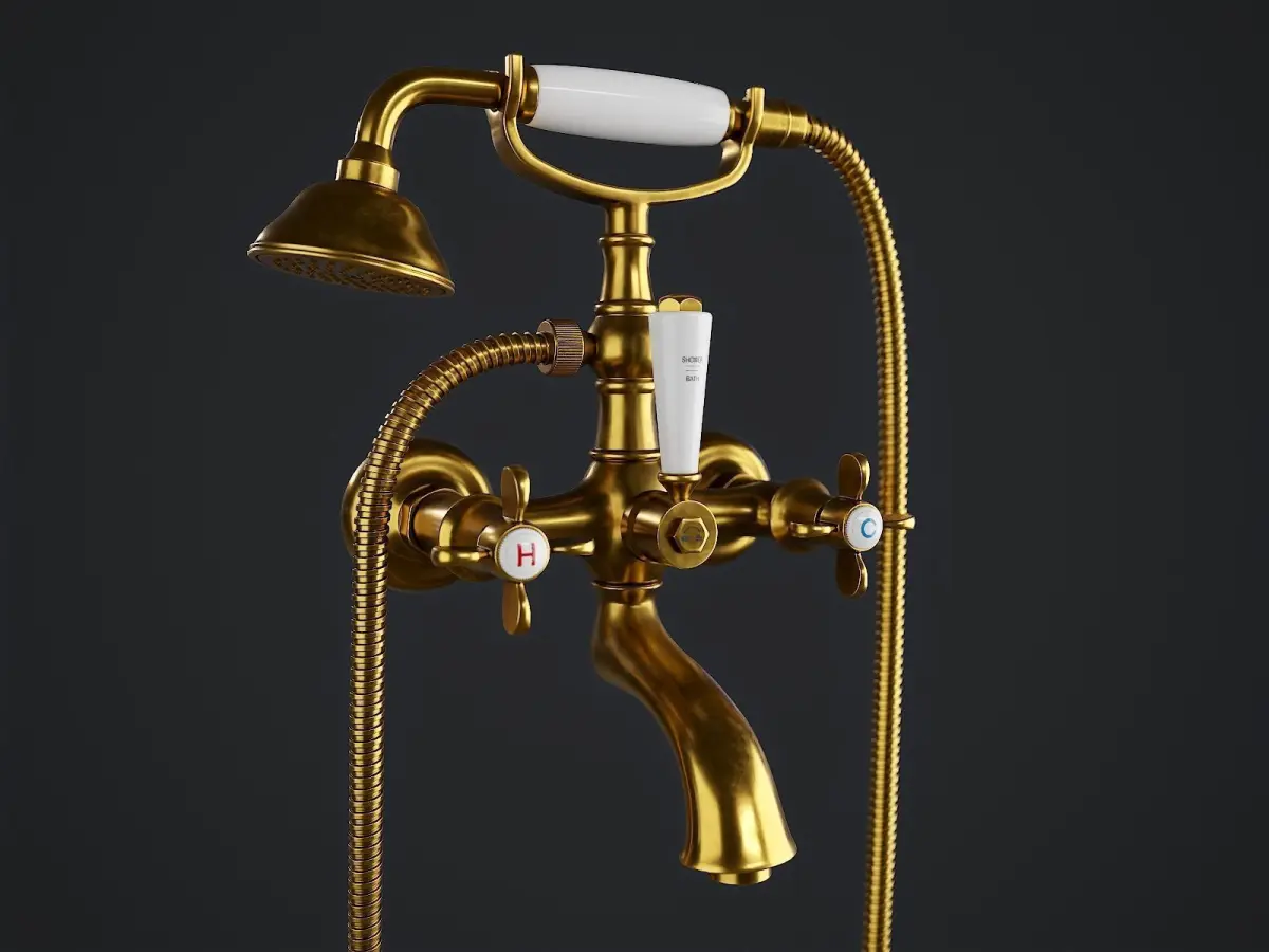 Digital 3D model of classic bathtub faucet. High detail model, PBR materials, 4K textures.