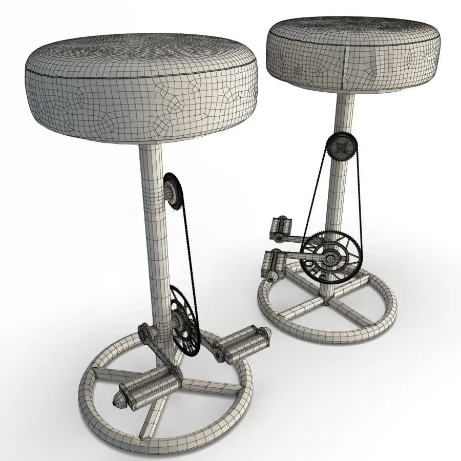 Arrange a vintage interior 3d with this atypical stools. Industrial bike shape stool with or without backrest.