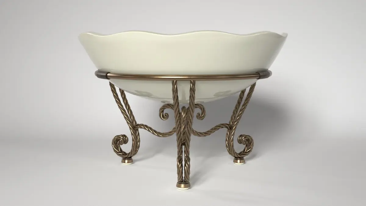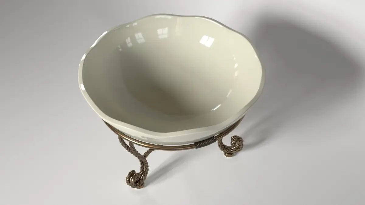 3D model of a vintage ceramic bowl with metal stand for your set decorating and rendering needs. The product is in real world scale (set to centimeters), grouped, and positioned at World Center (0,0,0 coordinates).