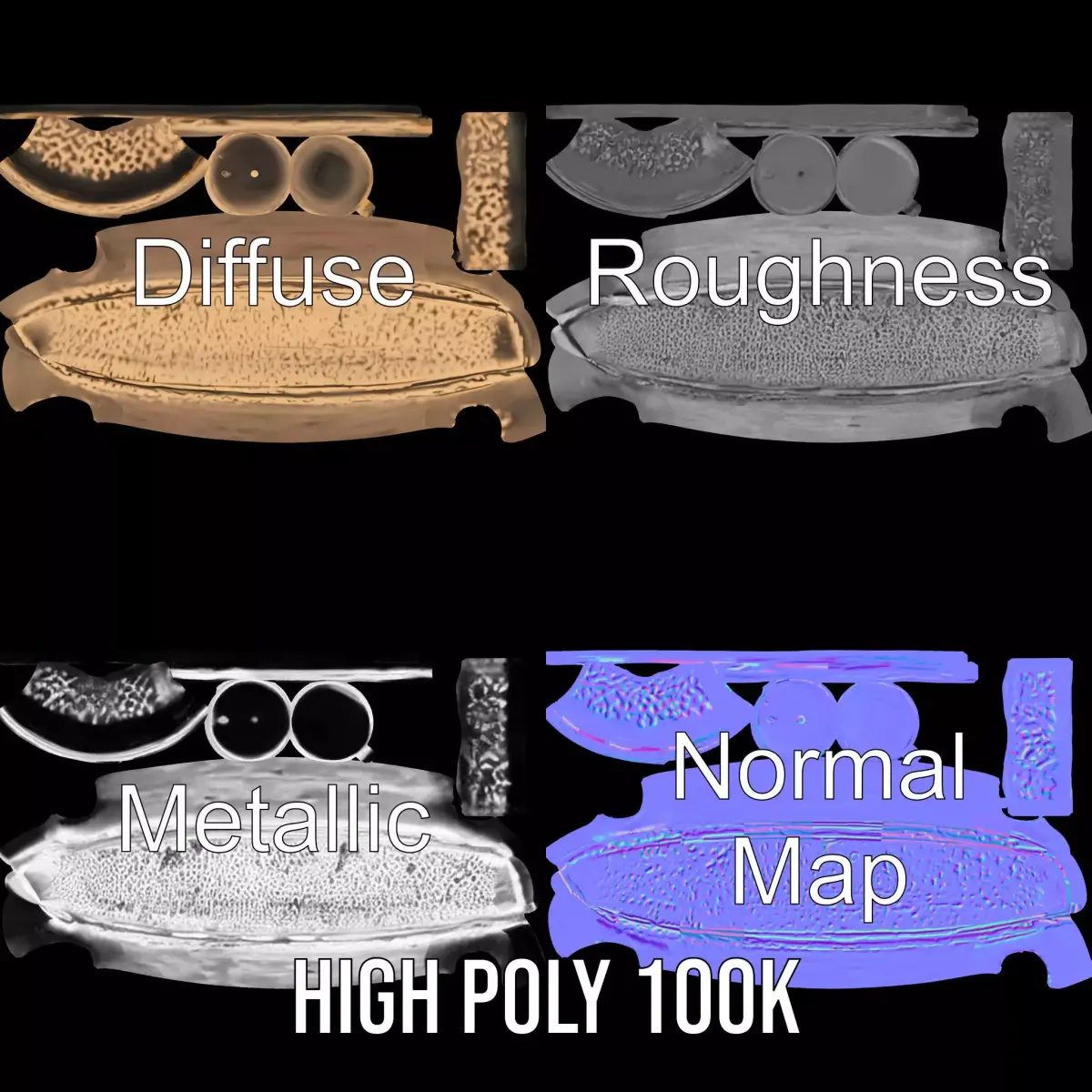 The model's textures are PBR, Diffuse, Normal Map, and reflection/roughness/metallic, which are suitable for any modern rendering engine. All models are accurately unwrapped and have no overlapping UV. All textures are 4096*4096 in size.