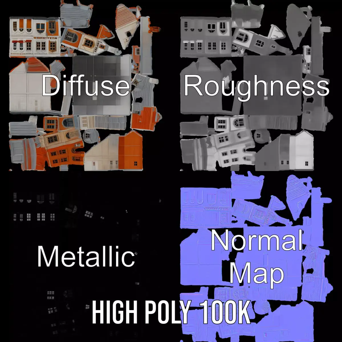 This Vintage Brick House model pack captures the charm of traditional European architecture. Perfectly suited for historical games, urban scenes, or architectural visualization, this pack offers three levels of detail: low-poly, middle-poly, and high-poly, allowing flexibility across various platforms and rendering engines. The PBR textures ensure high-quality visuals with diffuse, NormalMap, and reflection/roughness/metallic maps. All textures are meticulously unwrapped and measure 4096x4096, providing the utmost detail and no overlap. Ideal for use in Unity, Unreal, 3ds Max, Maya, and more. If you find this model helpful, please like and leave a comment!