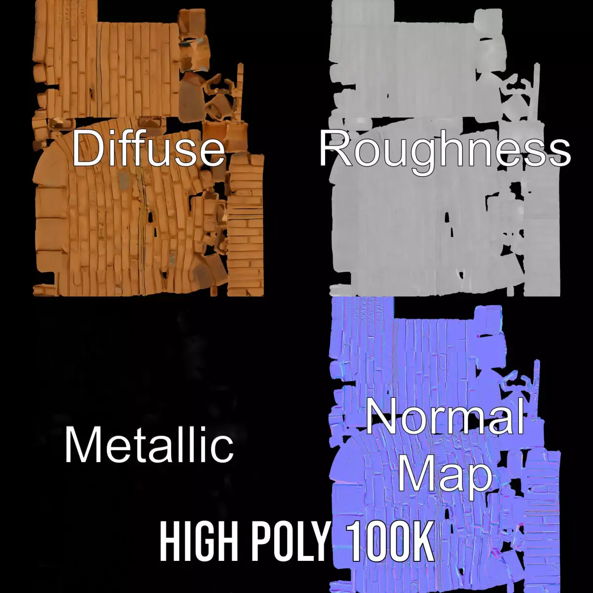 This Vintage Brick Wall model pack features a realistic and weathered brick texture, ideal for adding a rustic and authentic touch to any scene. Whether you're designing an ancient structure or a cozy interior wall, this model offers great versatility. The model is suitable for use in architectural visualizations, historical reconstructions, or as a backdrop in video games. Each model has 3 levels of detail: low-poly (1000 triangles for mobile), middle-poly (10,000 triangles for environment), and high-poly (100,000 triangles), which allows for the use of this model in production rendering (such as 3ds Max, Maya, Cinema4D, Blender, Vray/Corona/Cycles, and all others), game engines (Unity and Unreal compatible), and interactive presentations, providing a choice of detail based on the LOD System principle. The model's textures are PBR, Diffuse, NormalMap, and reflection/roughness/metallic, which are suitable for any modern rendering engine. All models are accurately unwrapped and have no overlapping UV. All textures are 4096*4096 in size. If you liked the model, please give it a like and leave a comment.