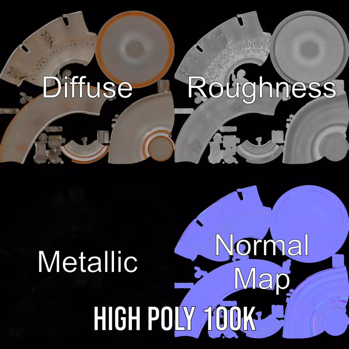 This vintage bronze vase model features an elegant patina finish with intricate ornamental designs and elaborate scrolling handles. Each model has 3 levels of detail: low-poly (1000 triangles for mobile), middle-poly (10,000 triangles for environment), and high-poly (100,000 triangles), which allows for the use of this model in production rendering (such as 3ds Max, Maya, Cinema4D, Blender, V-Ray/Corona/Cycles and all others), game engines (Unity and Unreal compatible), and interactive presentations, providing a choice of detail based on the LOD System principle. Ideal for historical scenes, home decor visuals, and antique shop interiors, it brings an authentic touch of elegance and history to your project. The model's textures are PBR, Diffuse, NormalMap, and reflection/roughness/metallic, which are suitable for any modern rendering engine. All models accurately unwrapped and have no overlapping UV. Please like and leave a comment for the model if you enjoyed it. All textures are 4096*4096 in size.