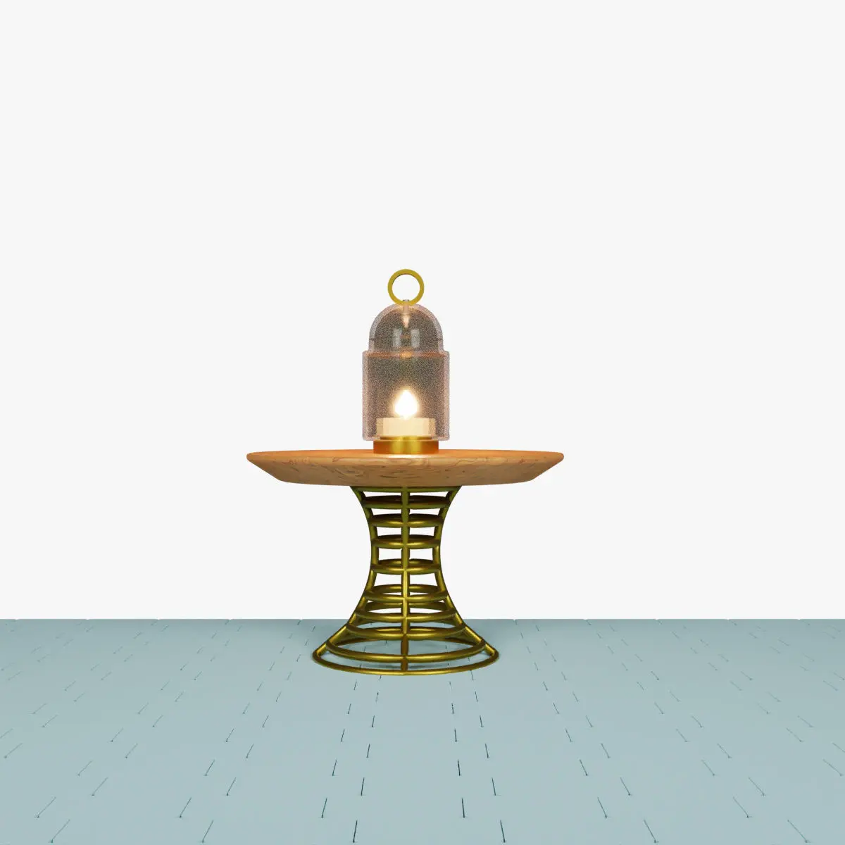 Vintage Candle Lantern on the Table 3D Model