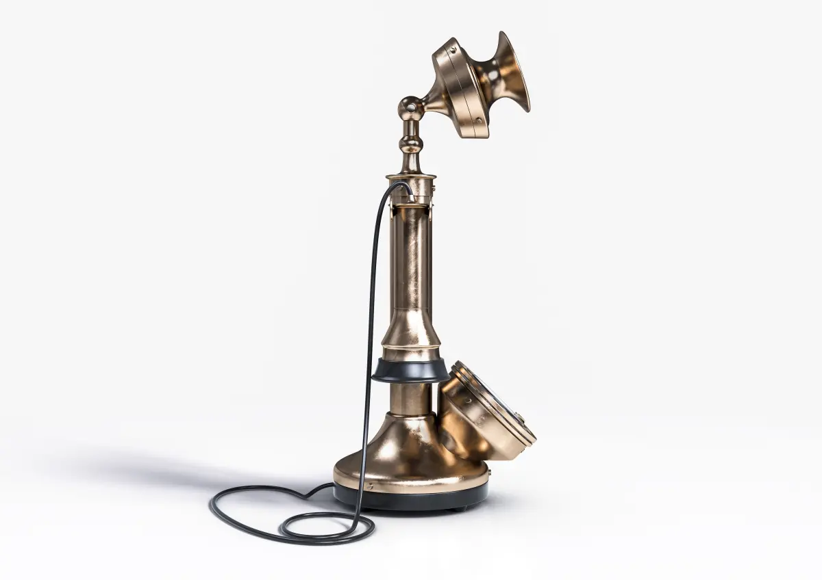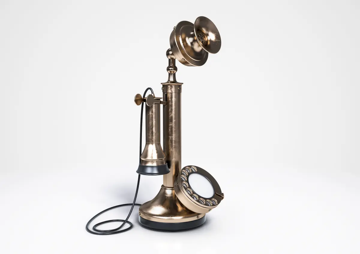 A vintage classic candlestick bell telephone made of brass build with Cinema 4D's volume builderContains procedural and parametrized meshes which may translate to higher poly count than stipulated if converted to other formats.
