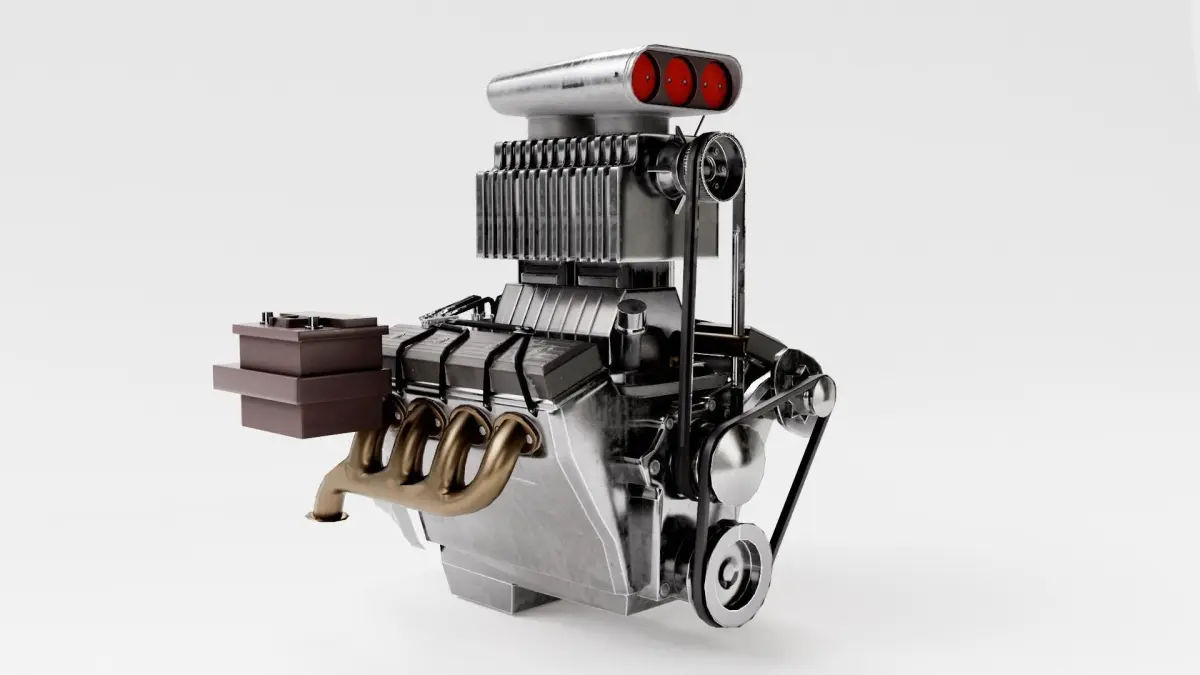 - Inspired by real world engine motor turbocharged v8