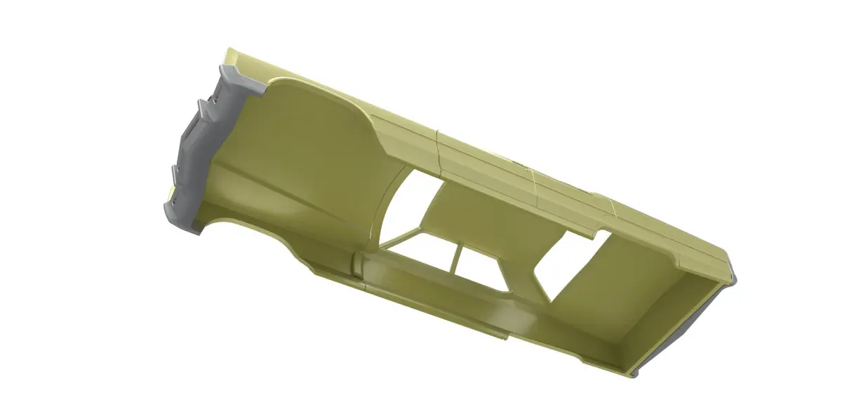 The model consists of parts: Front bumper, Front grid, Front light covers, Rear bumper, Shell part 1,2.